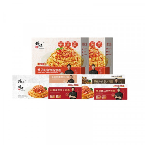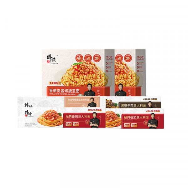 (世星阳光)锋味派意面慵懒周末组合装 1596.6g(黑胡椒牛肉300.2g 奶油培根蘑菇意280g 经典番茄300.2g*2 番茄肉酱208g*2)