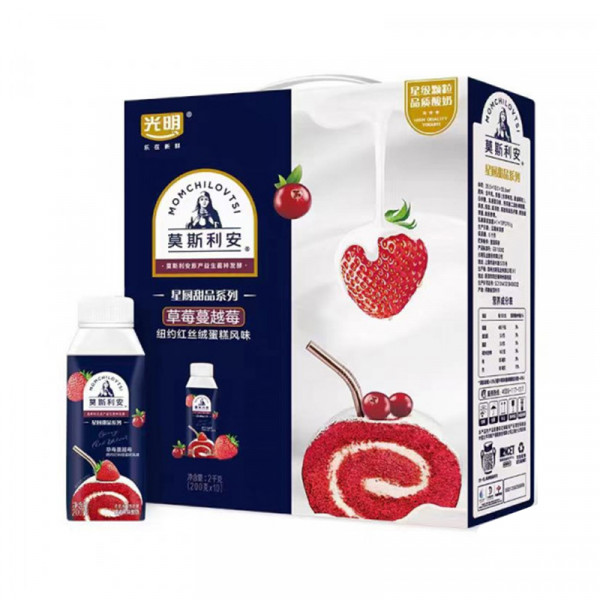 (中百)光明莫斯利安草莓蔓越莓酸奶200g*10 红丝绒风味果粒酸奶