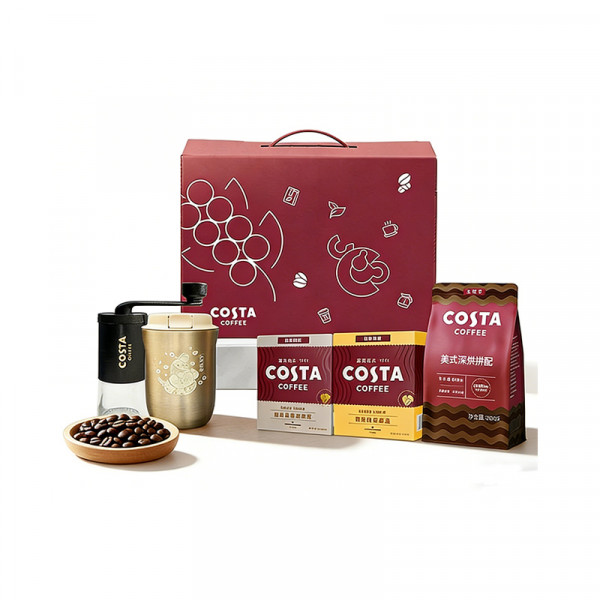 (超运·禾贸)COSTA鸿运礼盒 圣诞节送礼团购美式咖啡豆+磨豆机+挂耳咖啡+金色保温杯