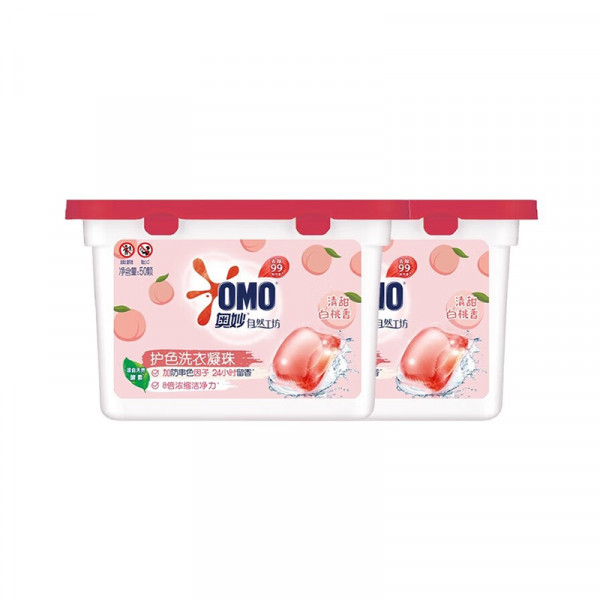 正大 (CP)奥妙(OMO)自然工坊白桃护色洗衣凝珠 50颗*2盒洗护用品衣物护理【全国包邮】