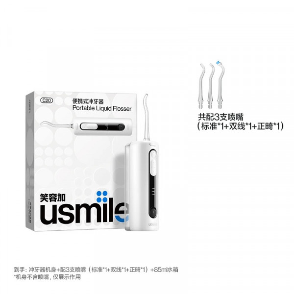 (超运·禾贸)usmile笑容加冲牙器C20镜湖蓝 洗牙器水牙线 伸缩便携式冲牙器