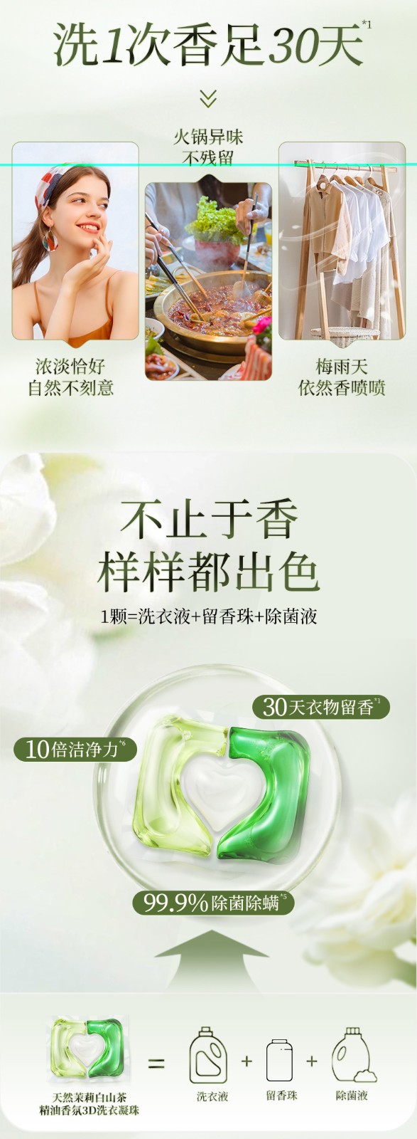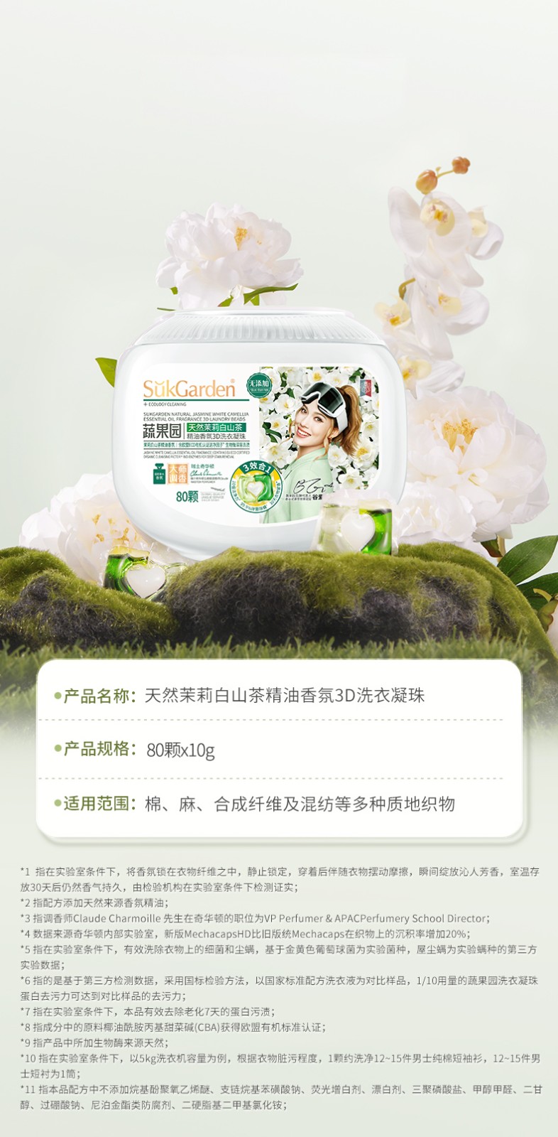 商品名称:(超运·禾贸)SukGarden蔬果园天然茉莉白山茶精油香氛3D洗衣凝珠10g*80颗*1【SGY035】 螨除菌洁净柔顺护衣留香珠洗衣球