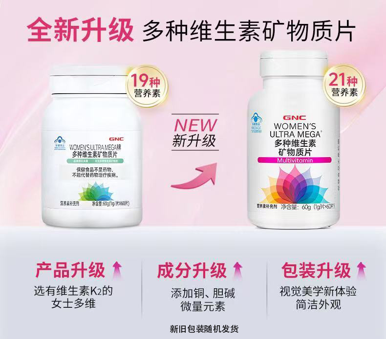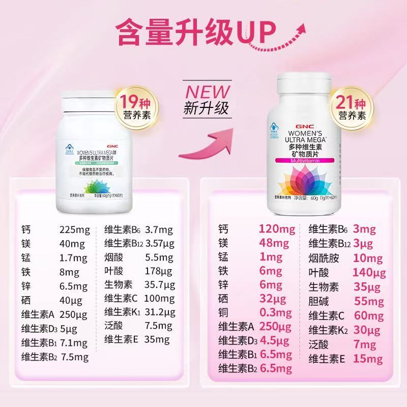 (巨邦佑)BJ+GNC健安喜 多种维生素矿物质片60片 女士多维 含钙镁锰铁锌硒维生素ABCDEK烟酸叶酸泛酸生物素