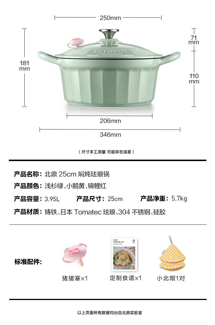 商品名称:(巨邦佑)R+北鼎(Buydeem)珐琅焖炖锅25cm 搪瓷铸铁锅 家用焖炖烤煎煮烹饪锅 一锅多用 白珐琅(下单前备注颜色或联系客服)