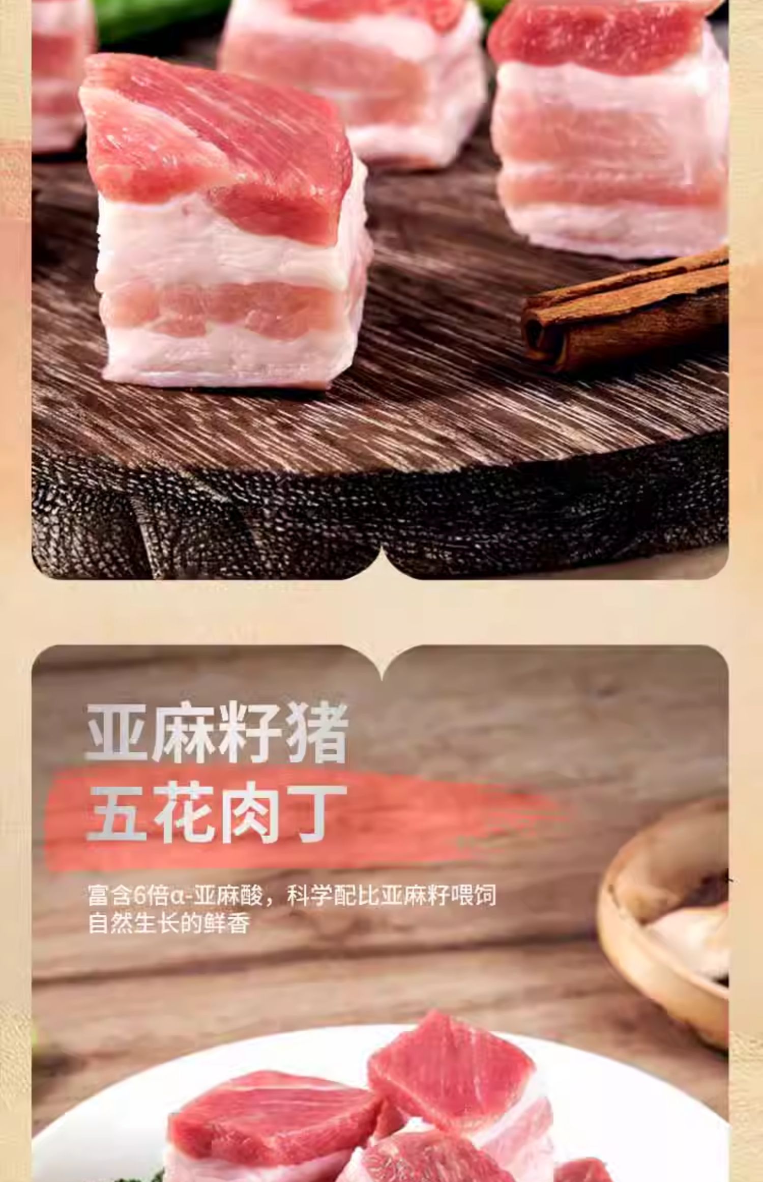 商品名称:(超运·禾贸)家佳康亚麻籽五花肉丁470g*5 冷鲜新鲜猪肉