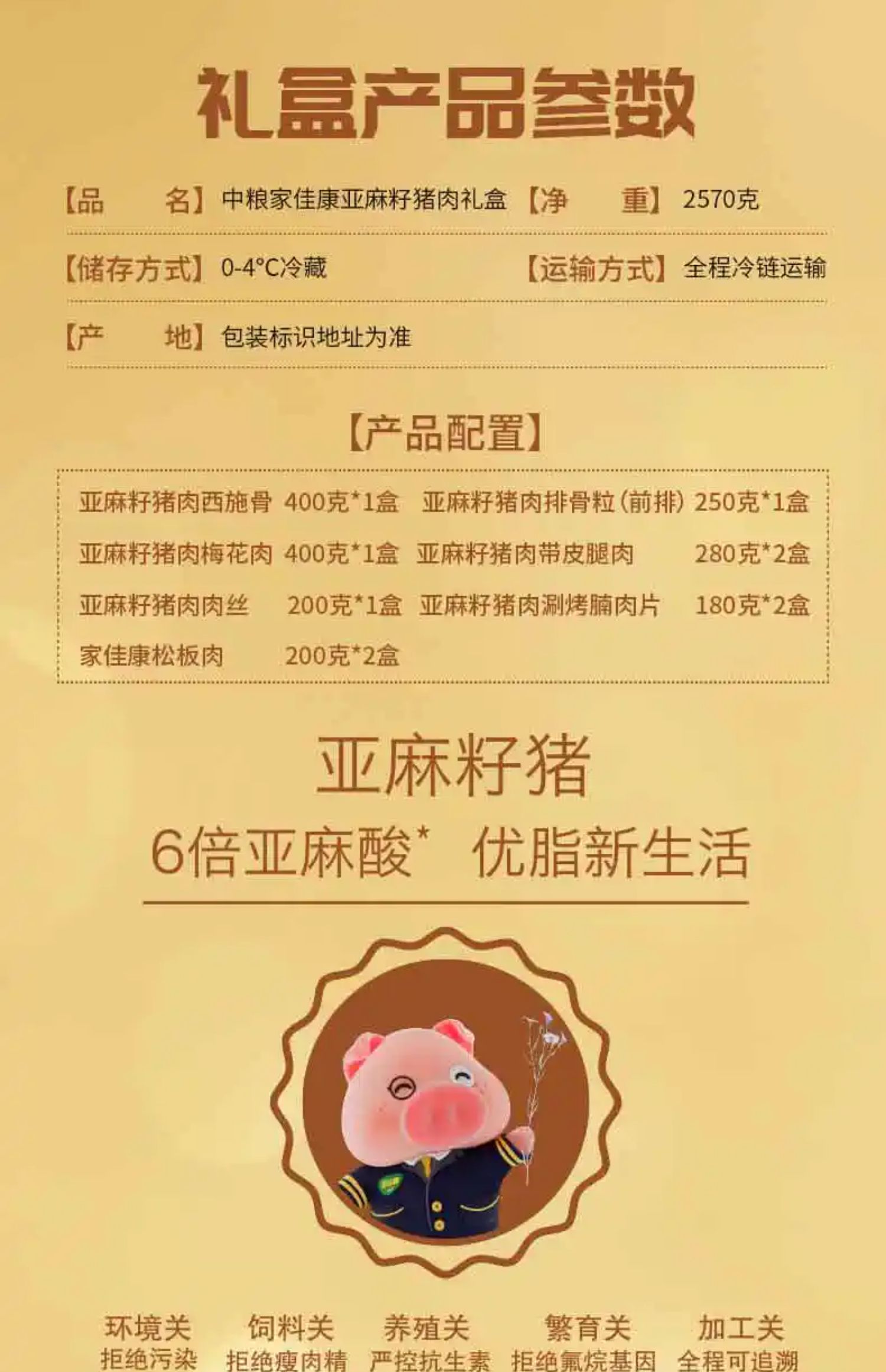 商品名称:(超运·禾贸)家佳康亚麻籽猪肉礼包2570g 猪肉礼盒生鲜送礼