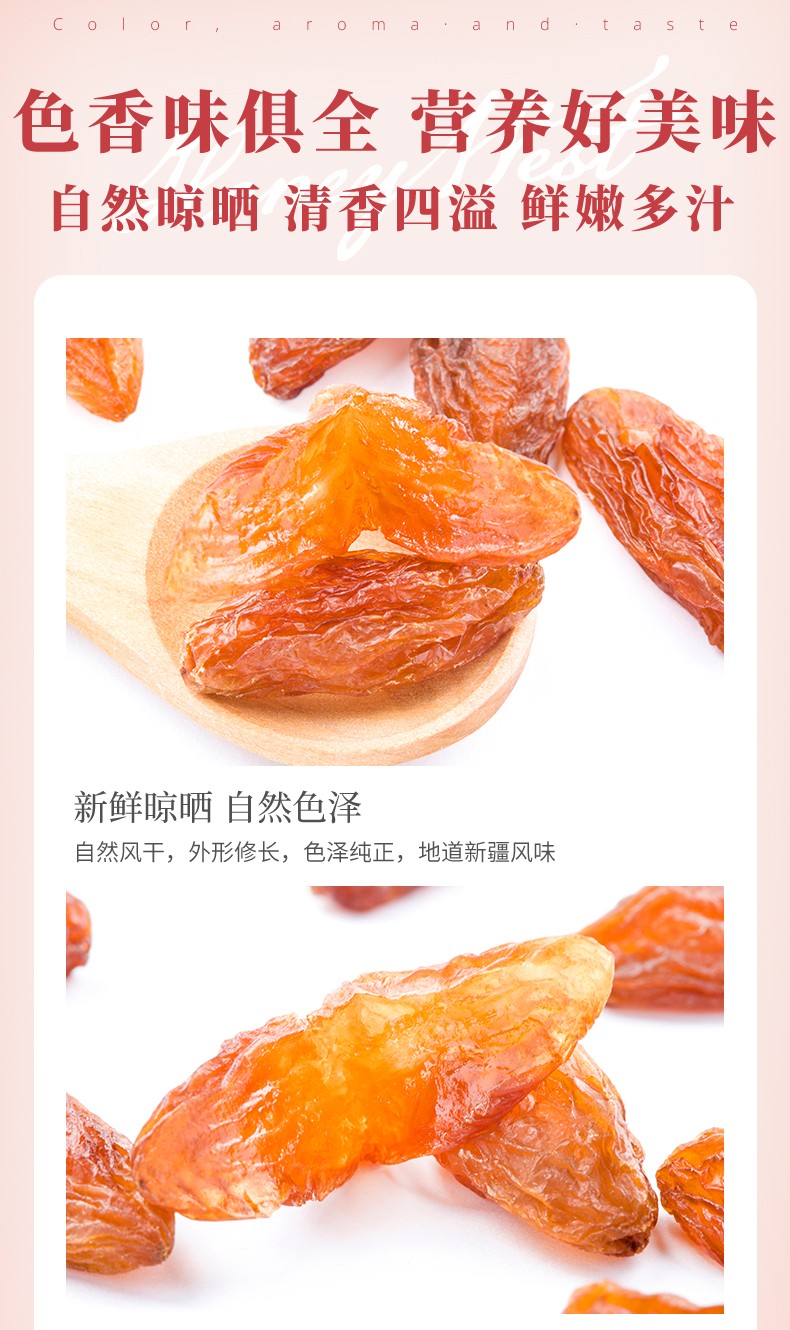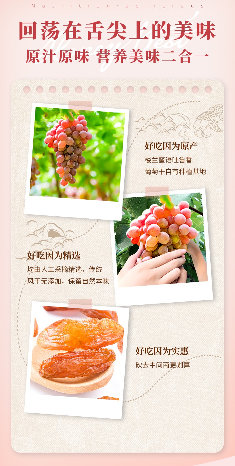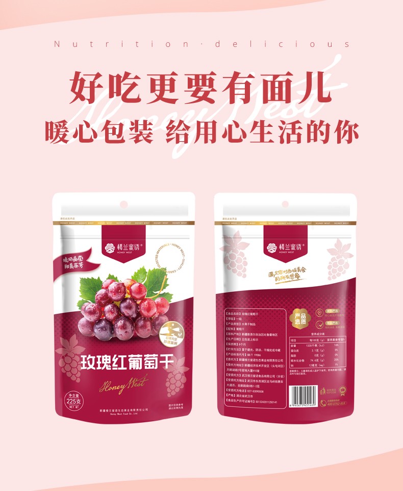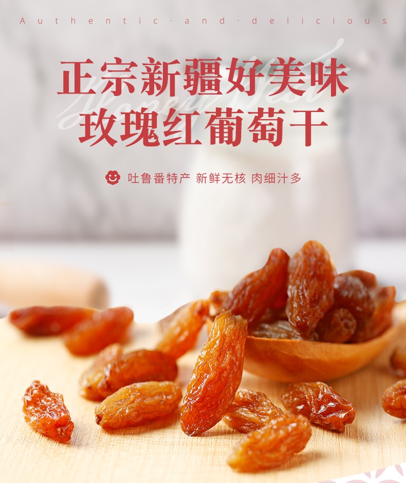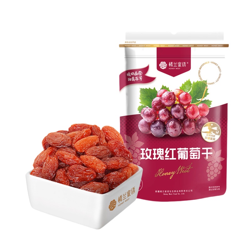 商品名称:(世星阳光)+楼兰蜜语玫瑰红葡萄干225g4袋 蜜饯果干 新疆吐鲁番特产 新鲜无核 原厂直供