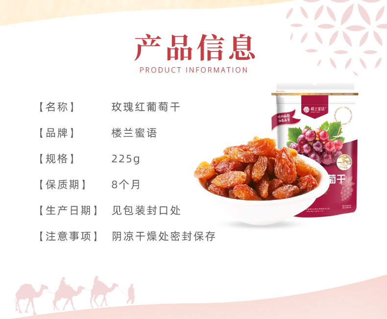 (世星阳光)+楼兰蜜语玫瑰红葡萄干225g4袋 蜜饯果干 新疆吐鲁番特产 新鲜无核 原厂直供