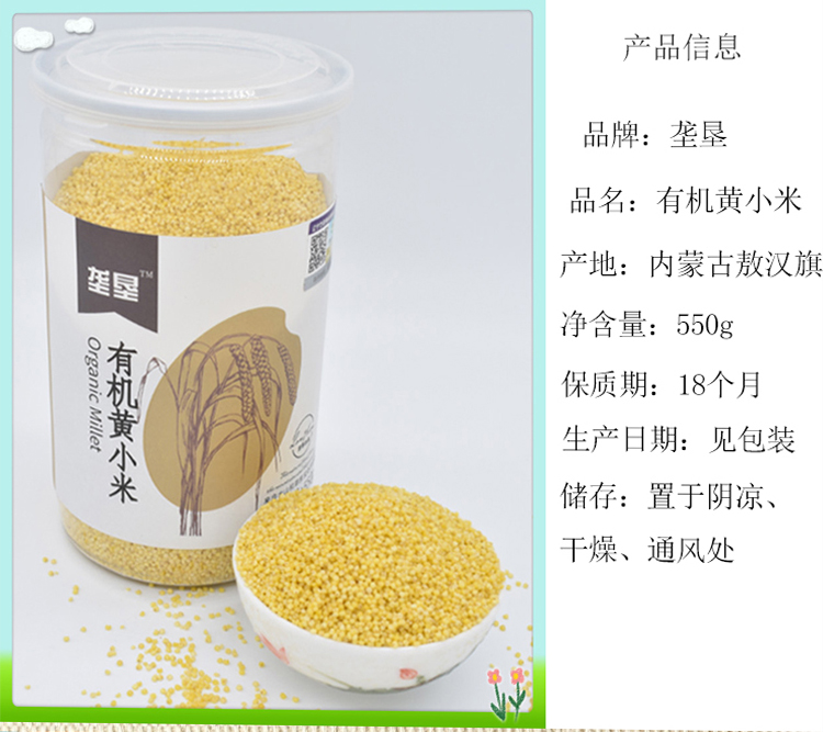 商品名称:(巨邦佑)BJ+垄垦有机黄小米550g*2 内蒙古敖汉杂粮