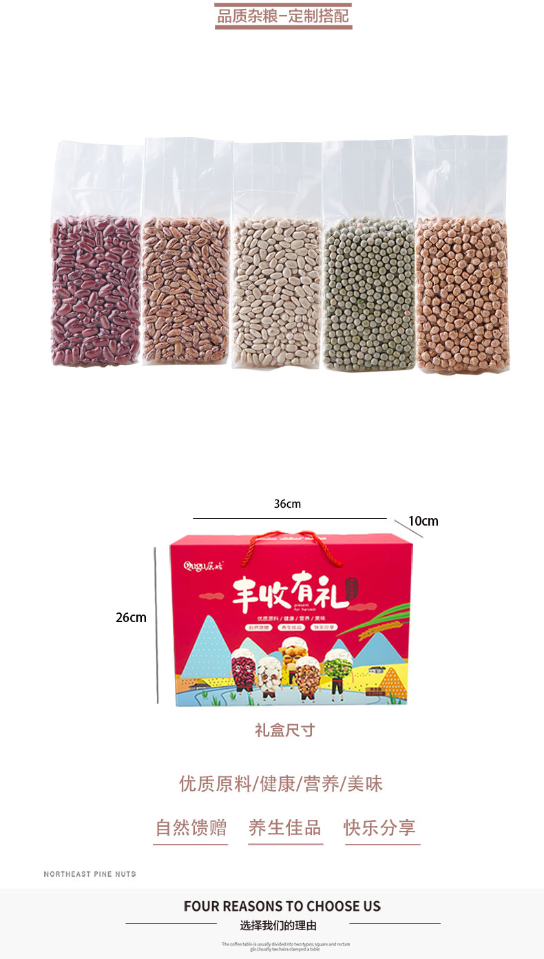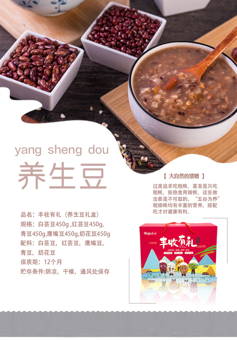 商品名称:(巨邦佑)BJ+屈姑丰收有礼(养生豆礼盒)2250g 白芸豆红芸豆青豆鹰嘴豆奶花豆