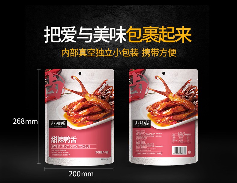 商品名称:(巨邦佑)BJ+小胡鸭甜辣鸭舌95g*2 卤味即食零食