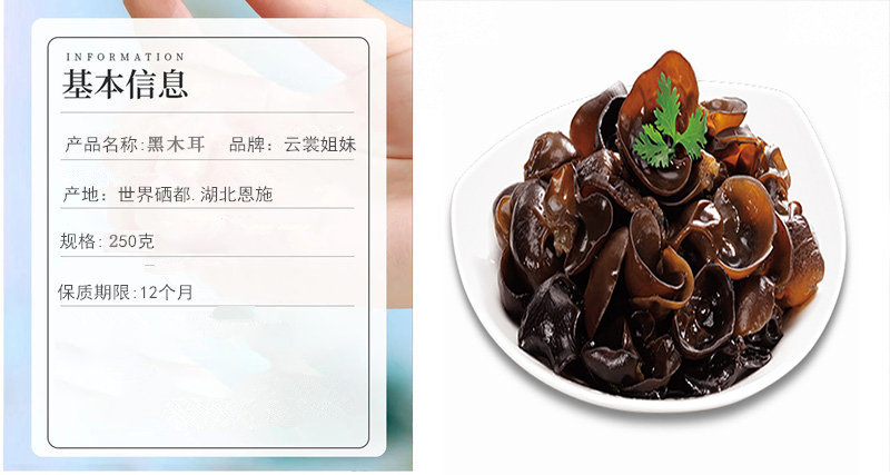 商品名称:(巨邦佑)BJ+云裳姐妹黑木耳250g 肉质肥厚菌香浓郁
