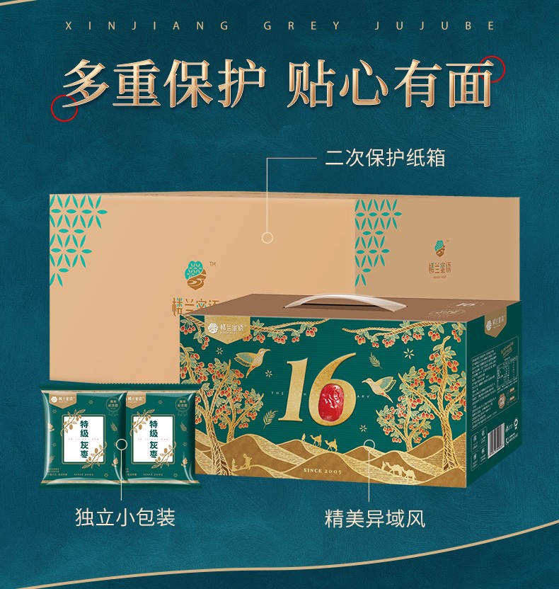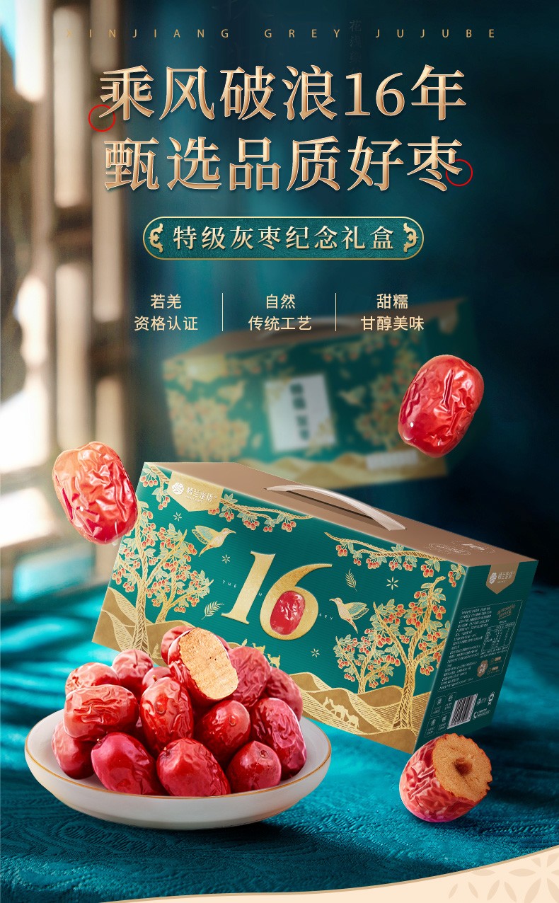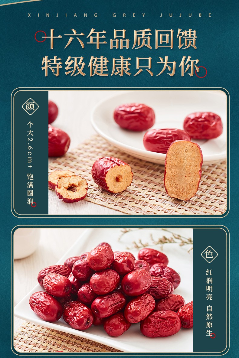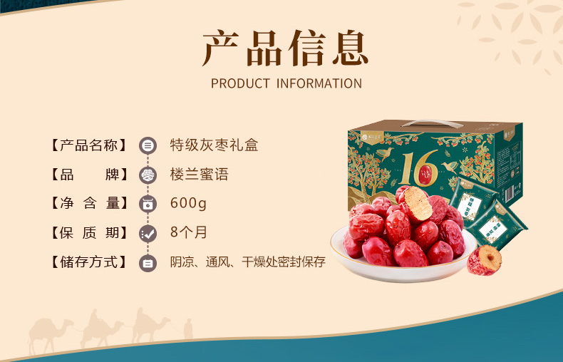 商品名称:(世星阳光)楼兰蜜语 特级灰枣600g 16周年纪念礼盒 特级新疆若羌灰枣 红枣 蜜饯果干