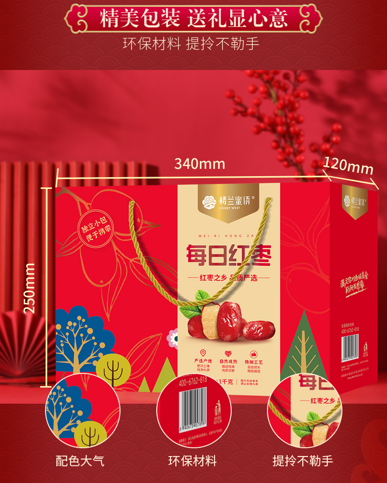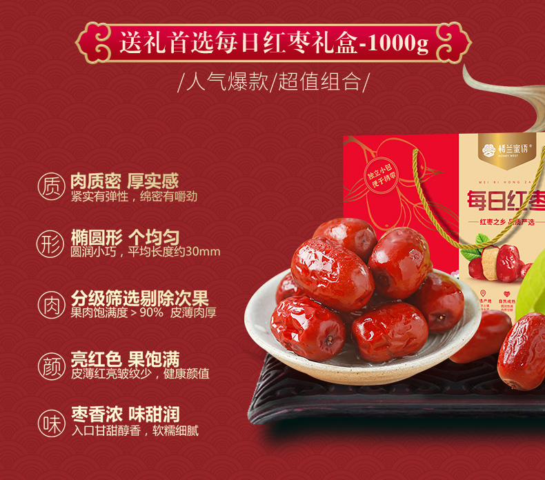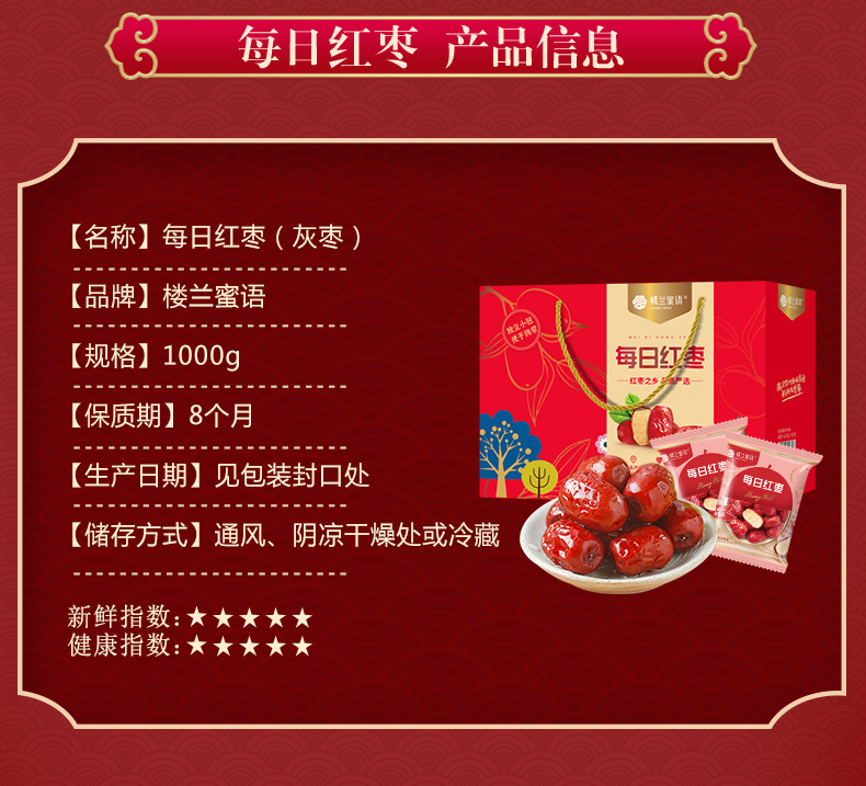 商品名称:(世星阳光) 楼兰蜜语每日红枣礼盒1000g 新疆特产 红枣灰枣子箱装送礼 每日红枣 内含30小袋