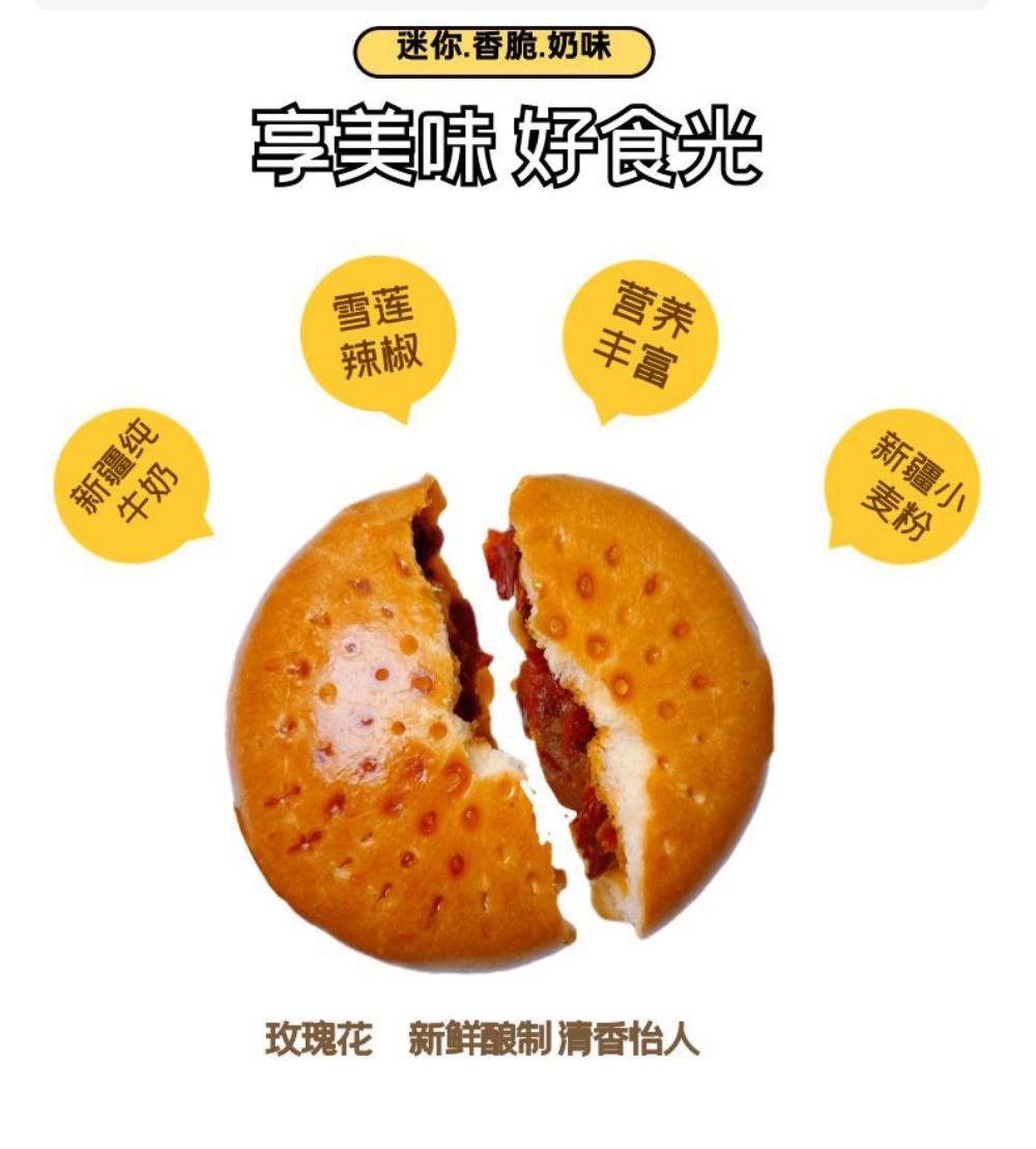 商品名称:(世星阳光) 御疆途 新疆玫瑰牛乳夹心馕 400克盒 营养早餐送朋友下午茶零食 玫瑰糕点夹心馕