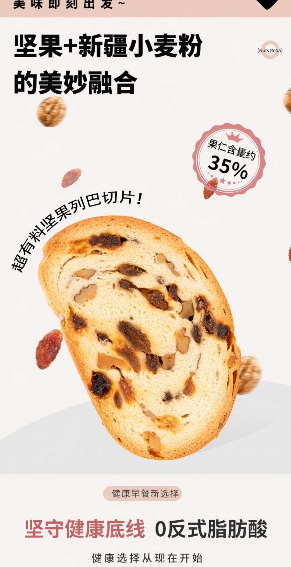 商品名称:(世星阳光) 御疆途 新疆大列巴切片坚果味 900克盒 代餐饱腹无添加面包源头直发 坚果列巴切片