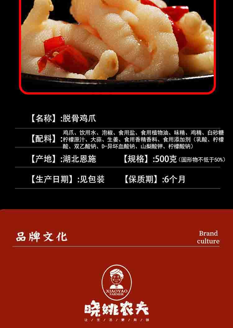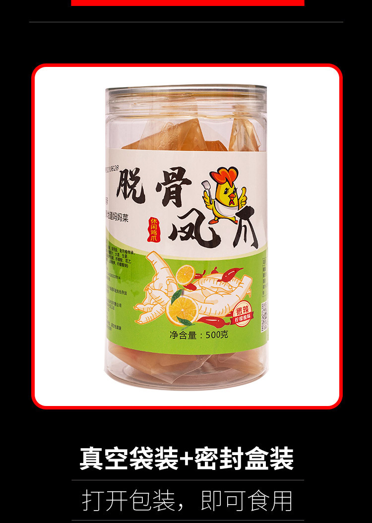 商品名称:(世星阳光) 晓姚农夫柠檬脱骨凤爪500g 去骨柠檬泡椒凤爪网红小吃休闲零食