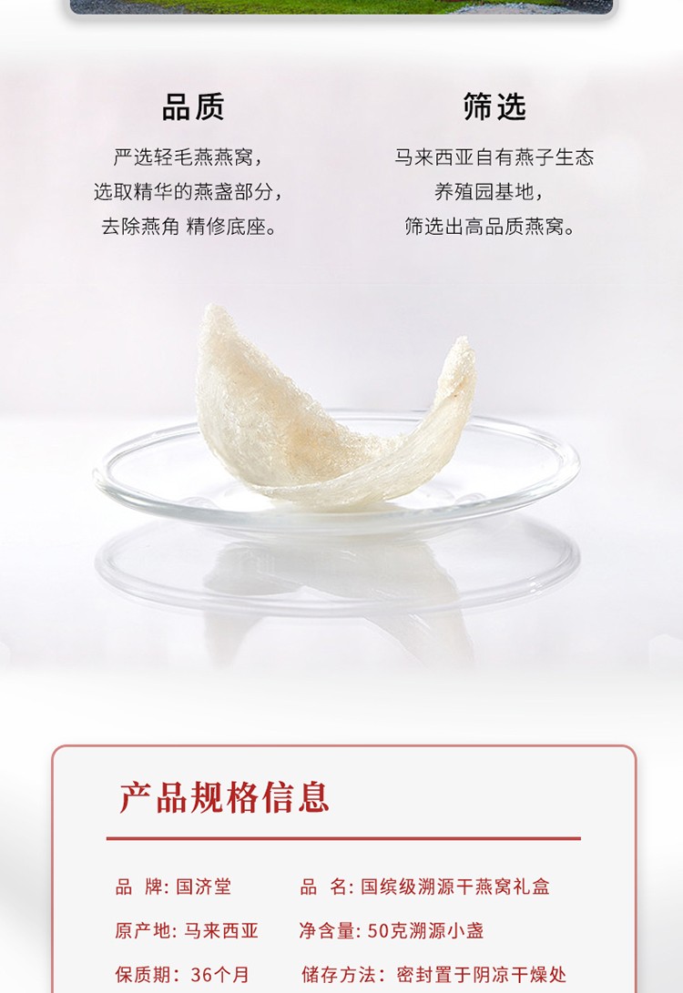 商品名称:(世星阳光) 国济堂.溯源干燕窝50g疏盏定制装 老人女性孕妇哺乳期滋补原装进口