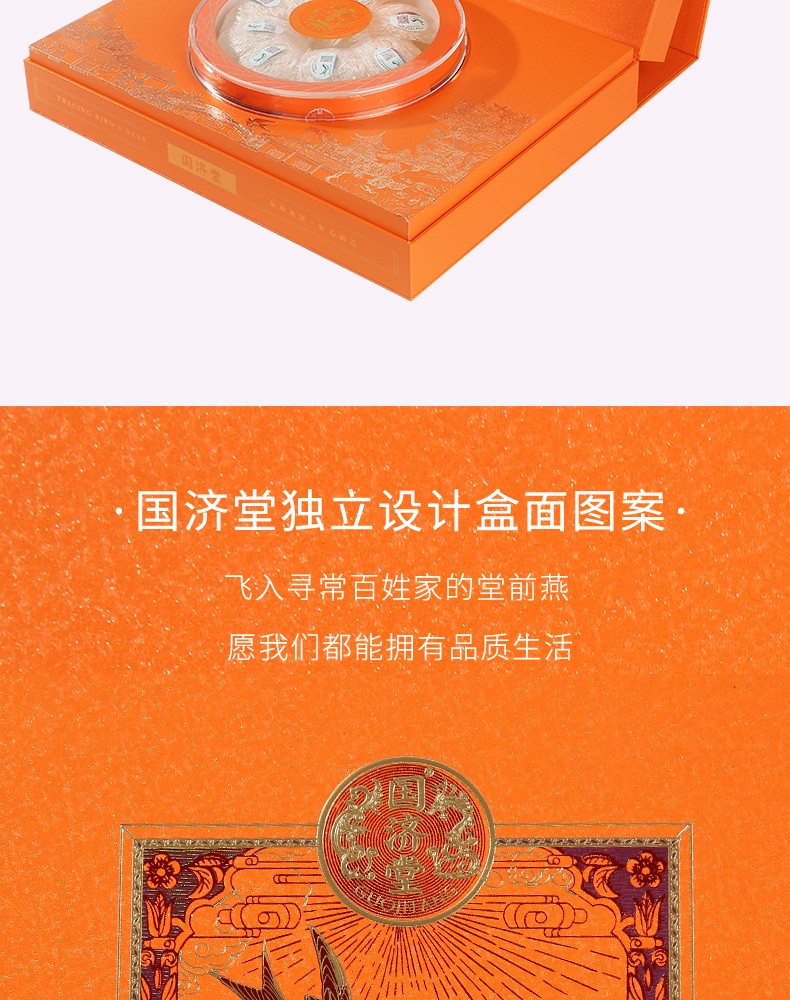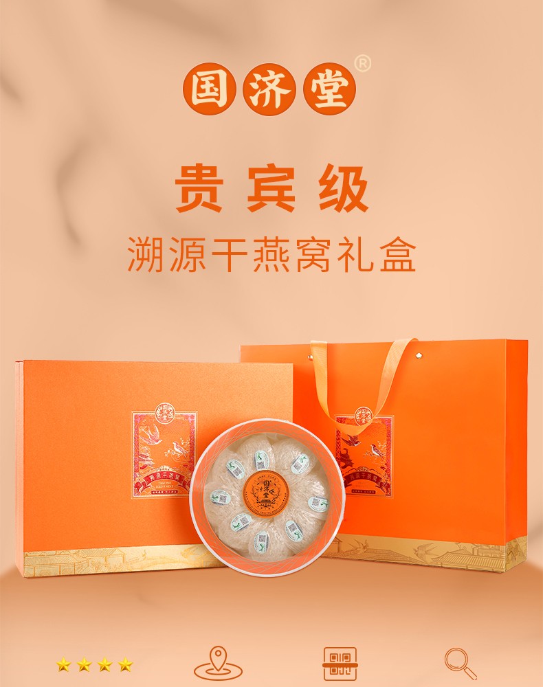 (世星阳光) 国济堂.贵宾级溯源干燕窝礼盒 50g疏盏 (橙色)四星干燕盏高端礼盒马来西亚原装进口滋补送礼物礼品