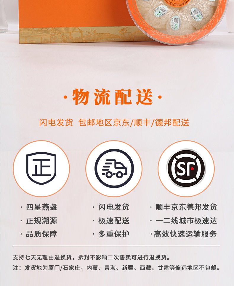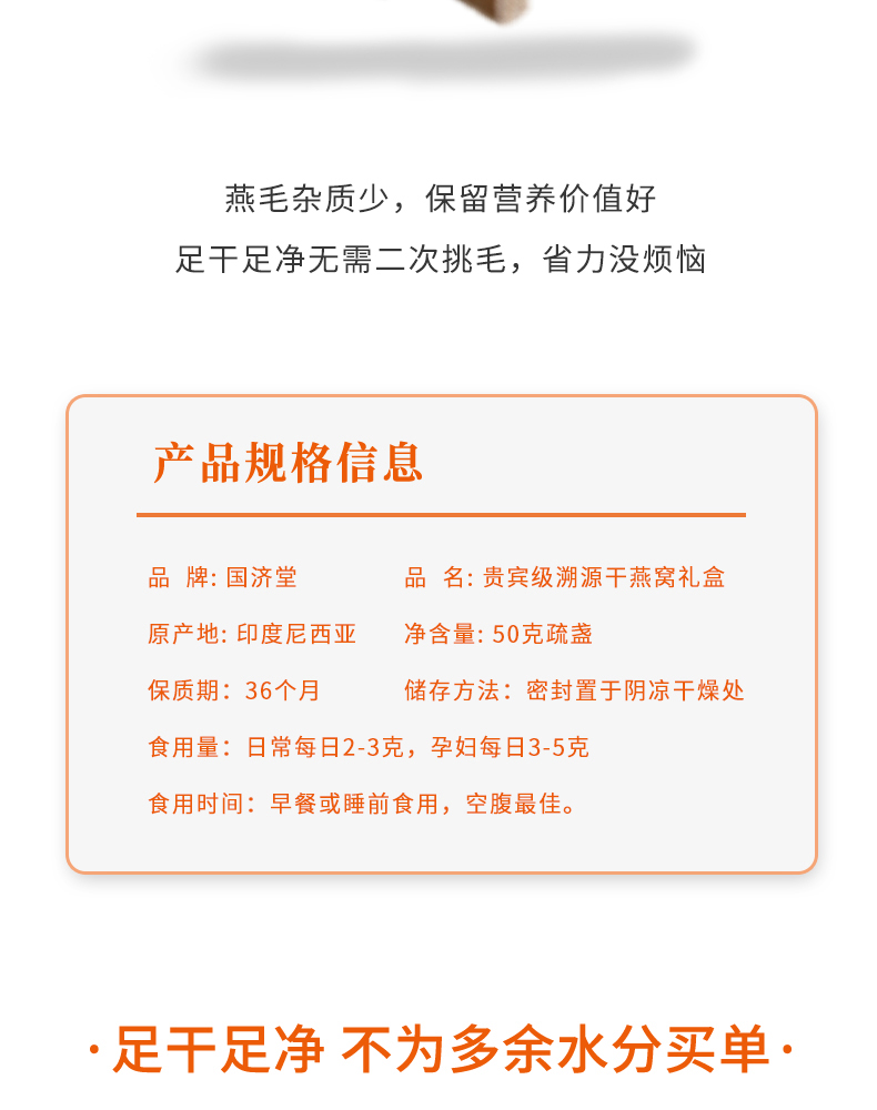商品名称:(世星阳光) 国济堂.贵宾级溯源干燕窝礼盒 50g疏盏 (橙色)四星干燕盏高端礼盒马来西亚原装进口滋补送礼物礼品