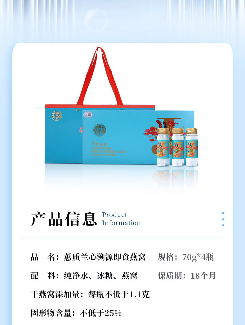 商品名称:(世星阳光) 国济堂·蕙质兰心溯源即食燕窝(70g*4)伴手礼女性孕期哺乳期滋补节日礼元旦春节日常滋养送女友妈妈婆婆