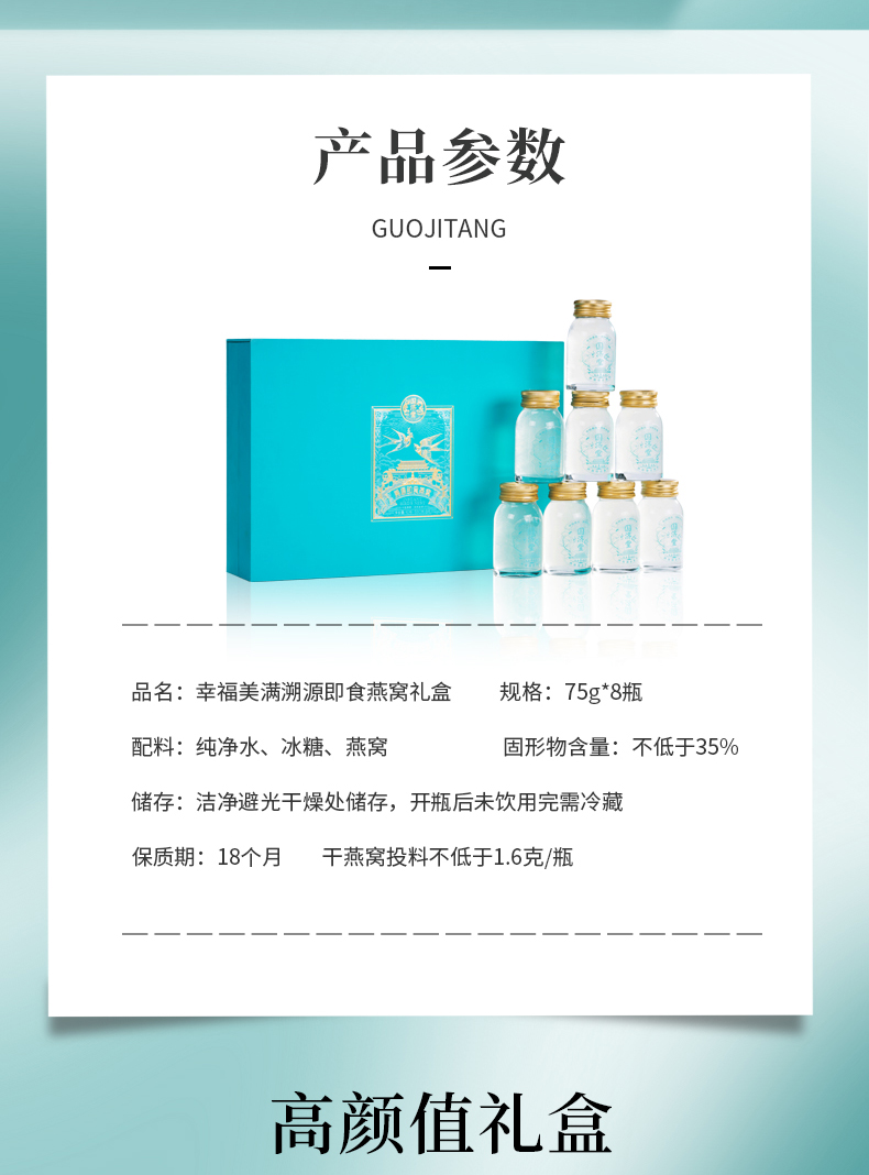 商品名称:(世星阳光) 国济堂.幸福美满溯源即食燕窝礼盒(75g*8) 高端礼盒女性孕期滋补节日礼送女友妈妈燕窝礼