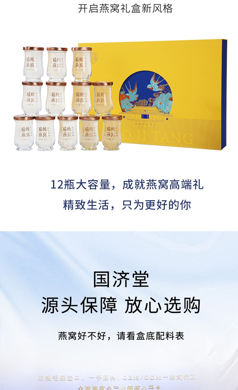 (世星阳光) 国济堂.国色天香.雍十二 溯源即食燕窝礼盒(50g*12) 高端礼盒节日礼女性孕期滋补养生