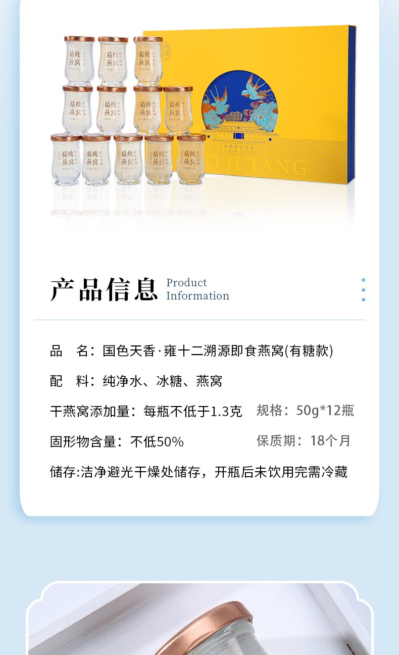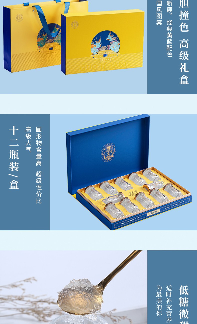 商品名称:(世星阳光) 国济堂.国色天香.雍十二 溯源即食燕窝礼盒(50g*12) 高端礼盒节日礼女性孕期滋补养生