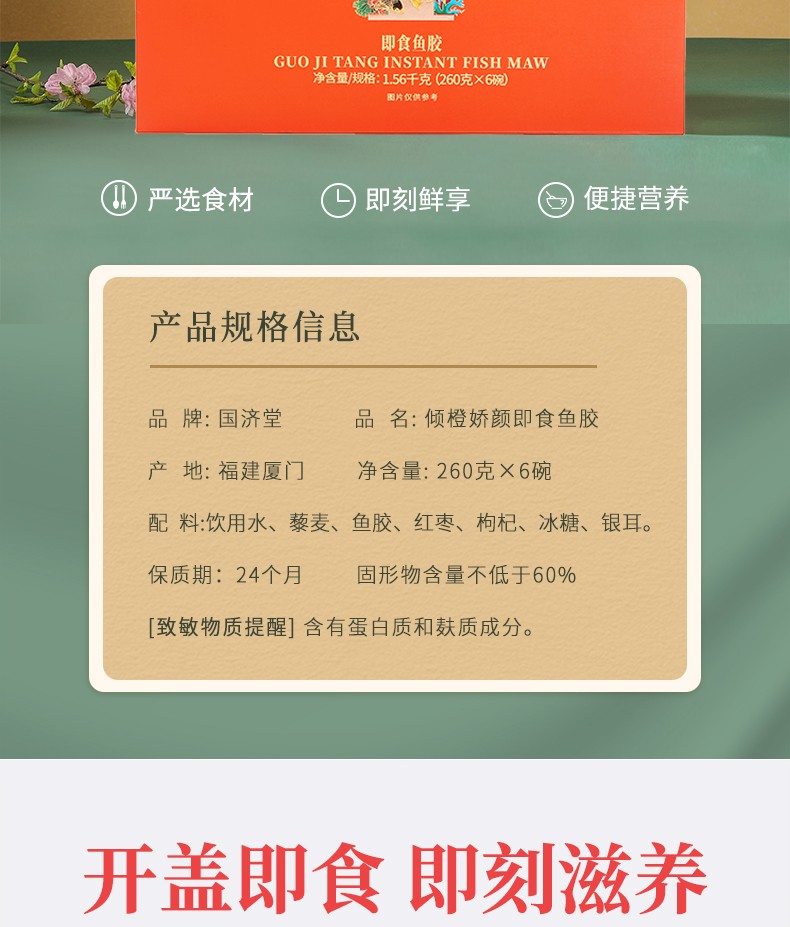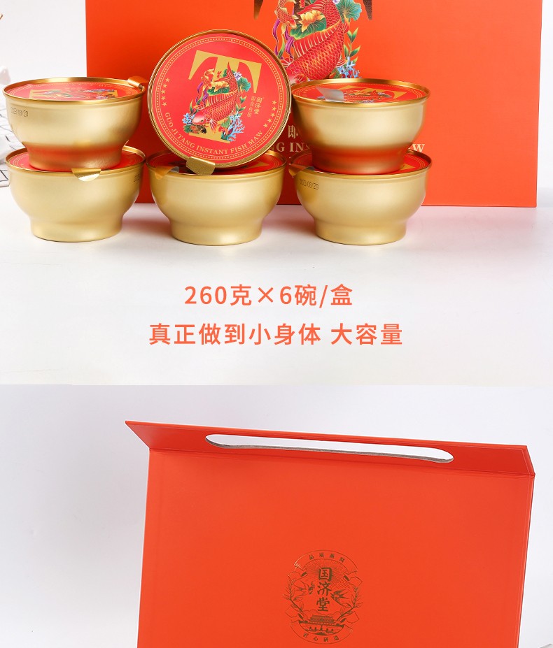 商品名称:(世星阳光) 国济堂·倾橙娇颜即食鱼胶礼盒(260g*6) 老人女性哺乳期滋补营养品节日新年礼品送宝妈