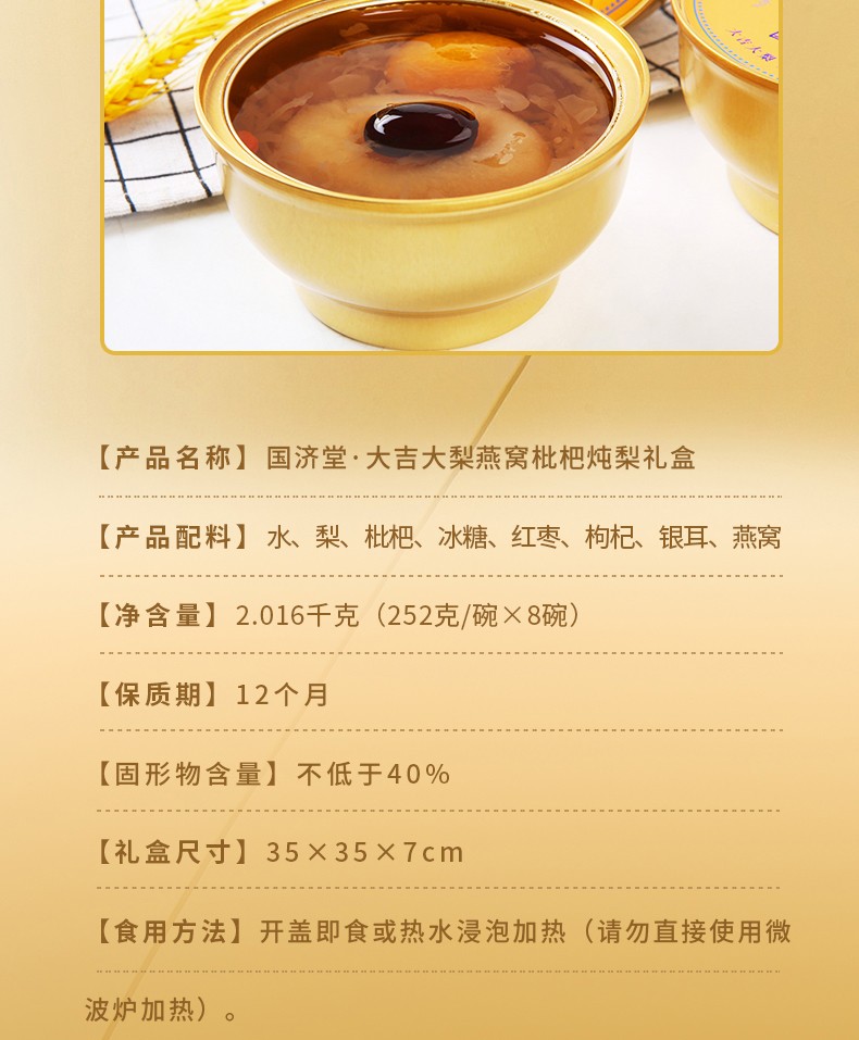 商品名称:(世星阳光) 国济堂·大吉大利燕窝枇杷炖梨礼盒(252*8) 水果罐头下午茶即食炖梨送爱人父母节日礼盒