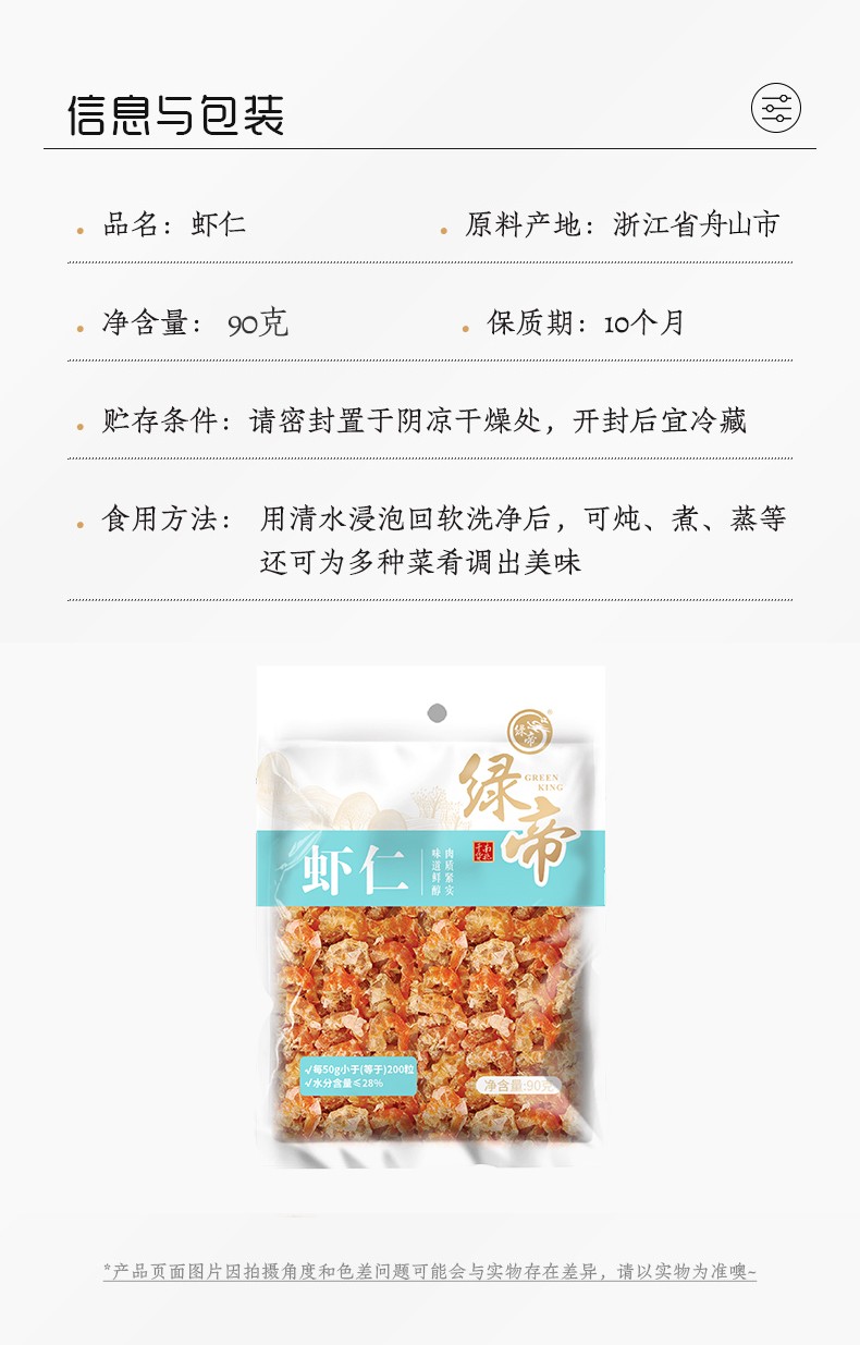 商品名称:(世星阳光)绿帝虾仁90g 淡干海米小金钩虾仁虾干水产海鲜干货宝宝辅食