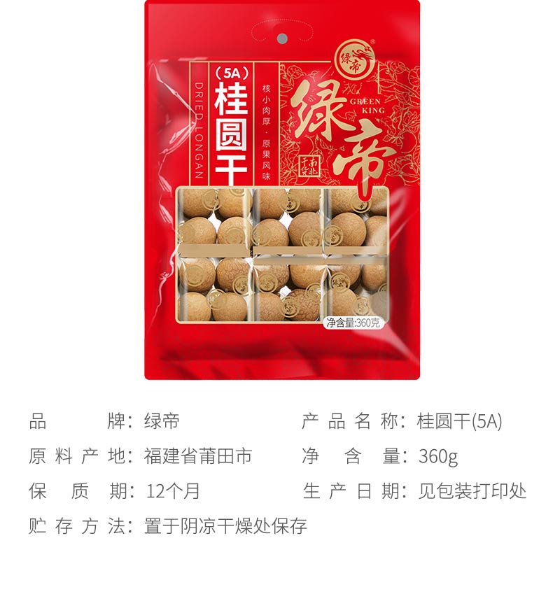 商品名称:(世星阳光)绿帝桂圆干360g 富桂团圆 福建龙眼干 银耳莲子羹食材