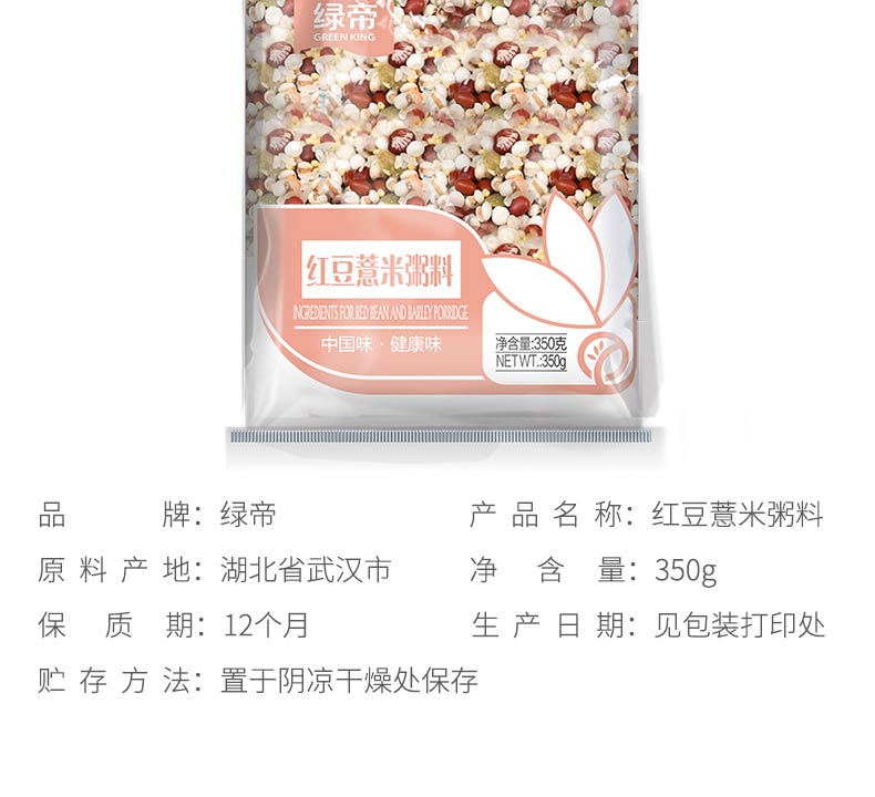 商品名称:(世星阳光)绿帝红豆薏米粥料350g*3 营养早餐八宝粥红豆薏米