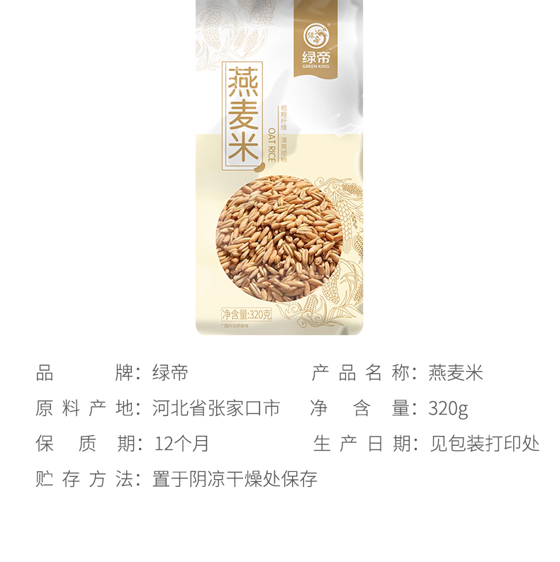 商品名称:(世星阳光)绿帝燕麦米320g*3 五谷杂粮粗粮主食粥米伴侣