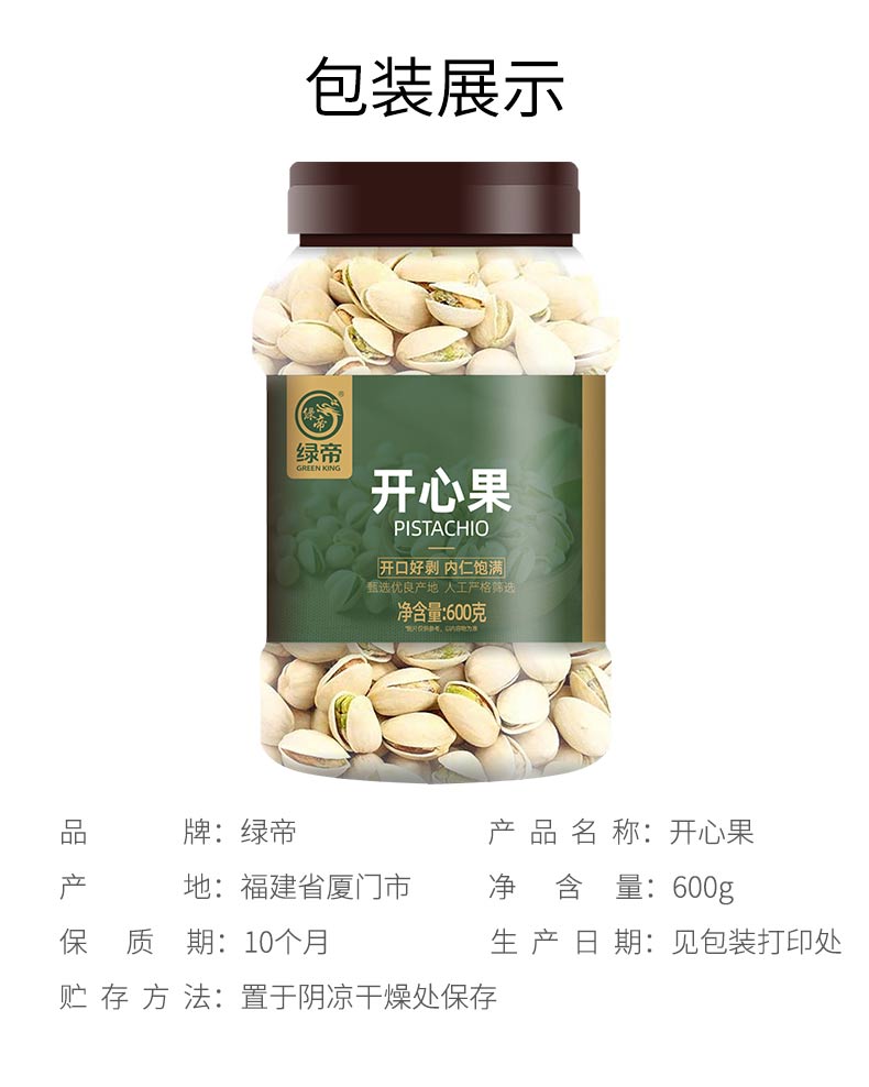 商品名称:(世星阳光)绿帝开心果600g 坚果点心零食干货孕妇零食