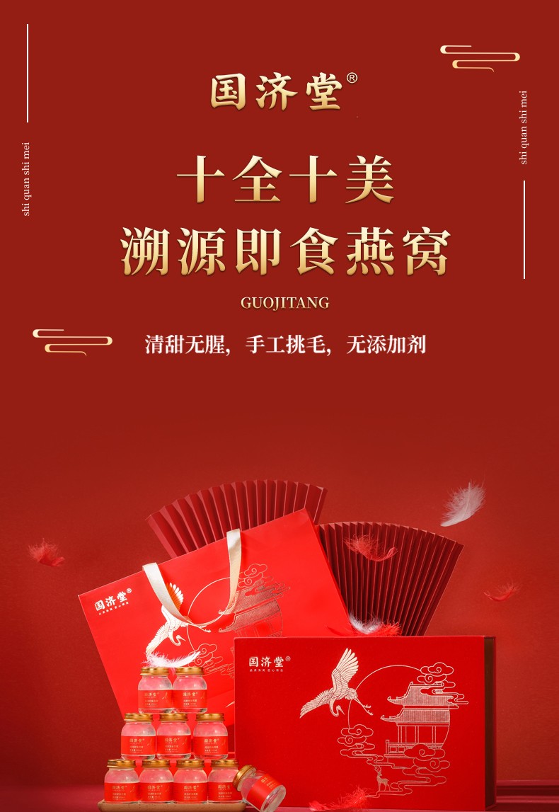 (世星阳光) 国济堂 十全十美溯源即食燕窝礼盒(45g*10)女性孕妇老人健康礼 清甜无腥,手工挑毛,无添加剂