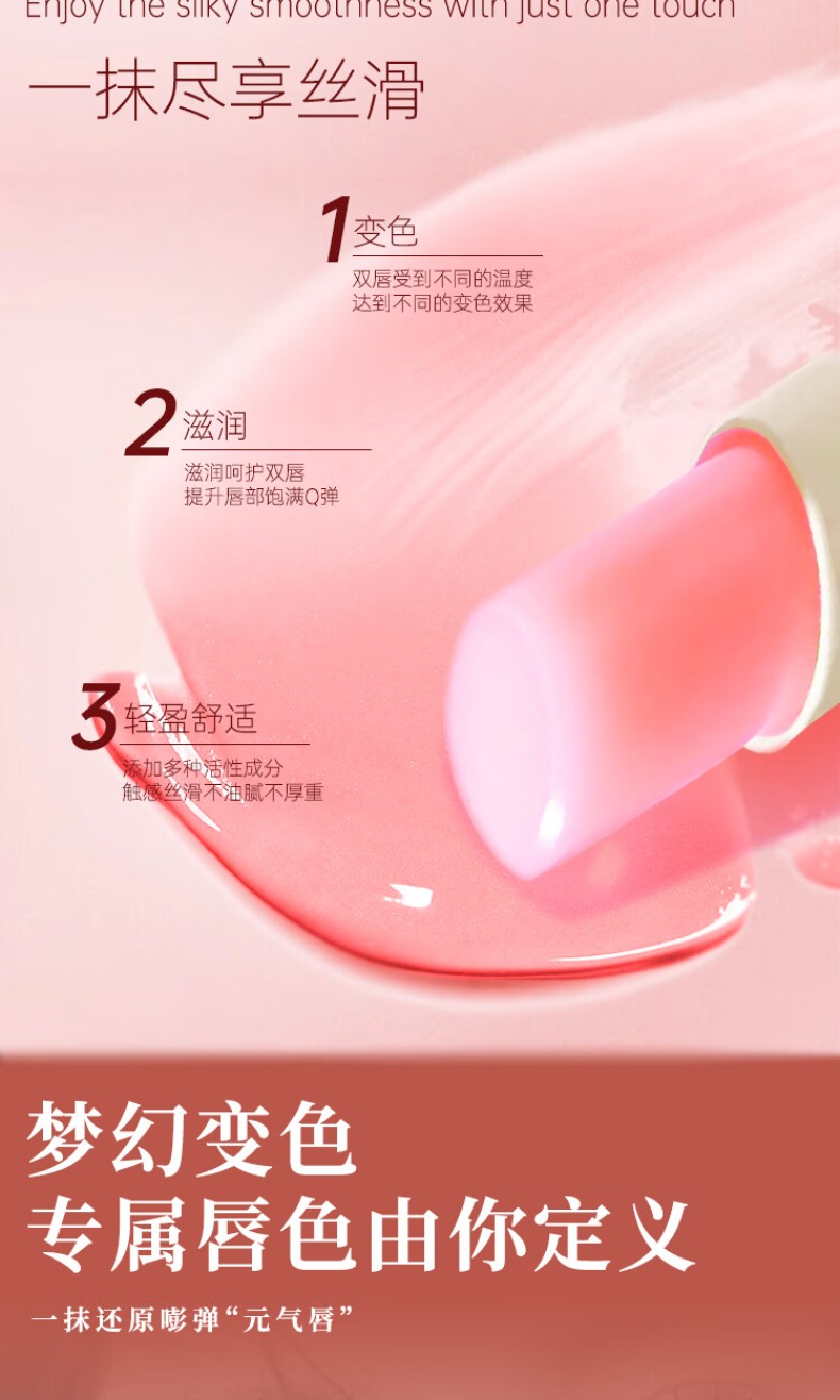商品名称:(巨邦佑)BH+弥彩润唇膏滋润防干裂补水保湿护理唇部淡化唇纹修护补水温变千人千色 温变(千人千色)