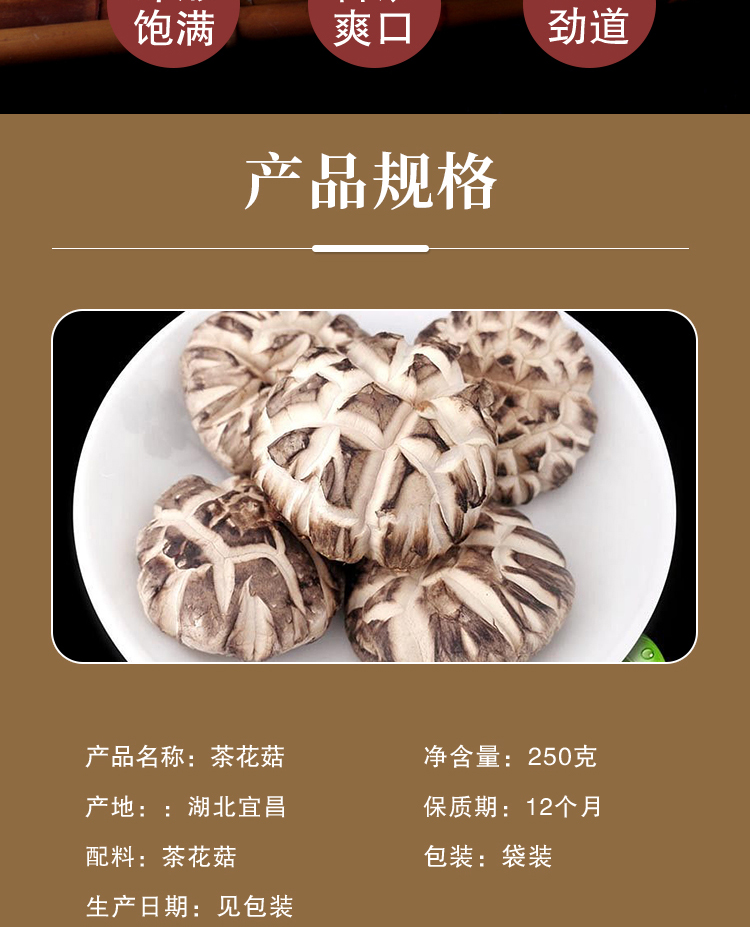 商品名称:(自营1) 惟楚臻味 茶花菇250g袋