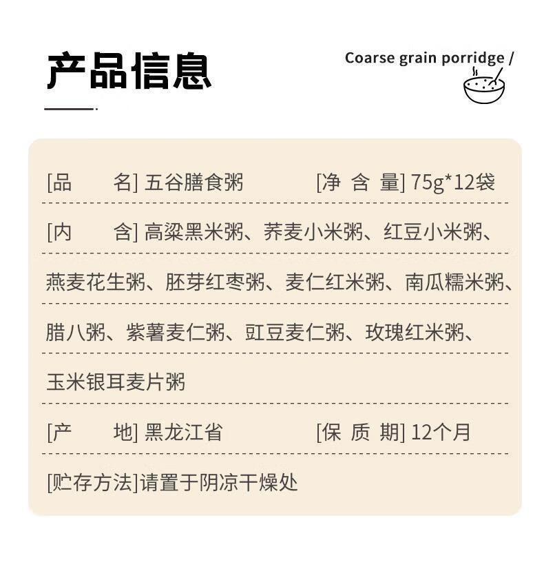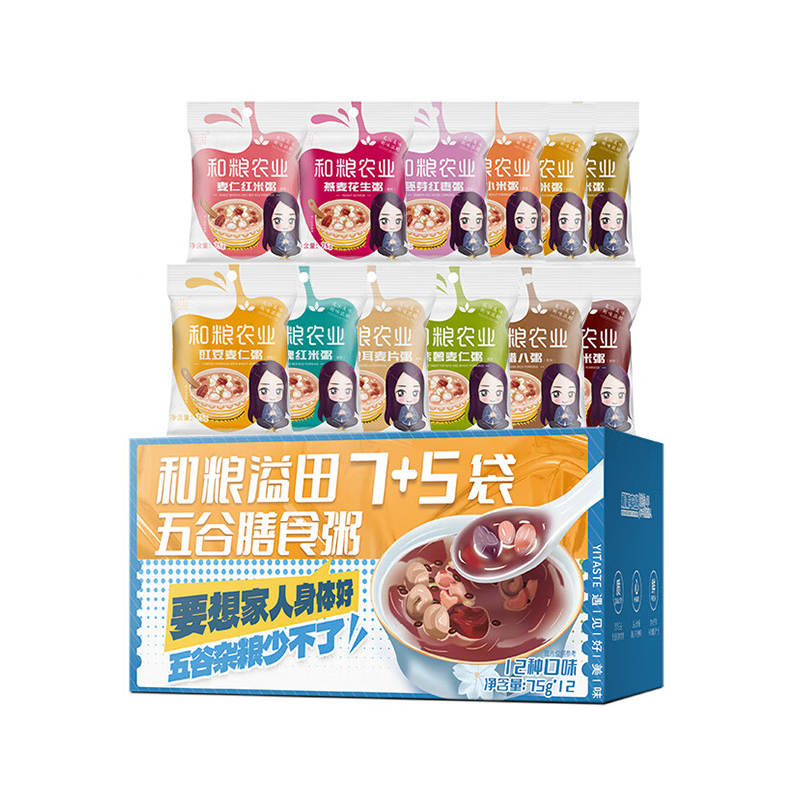 商品名称:(巨邦佑)BJ+溢田五谷膳食粥75g*12袋 七日杂粮粥7+5袋组合