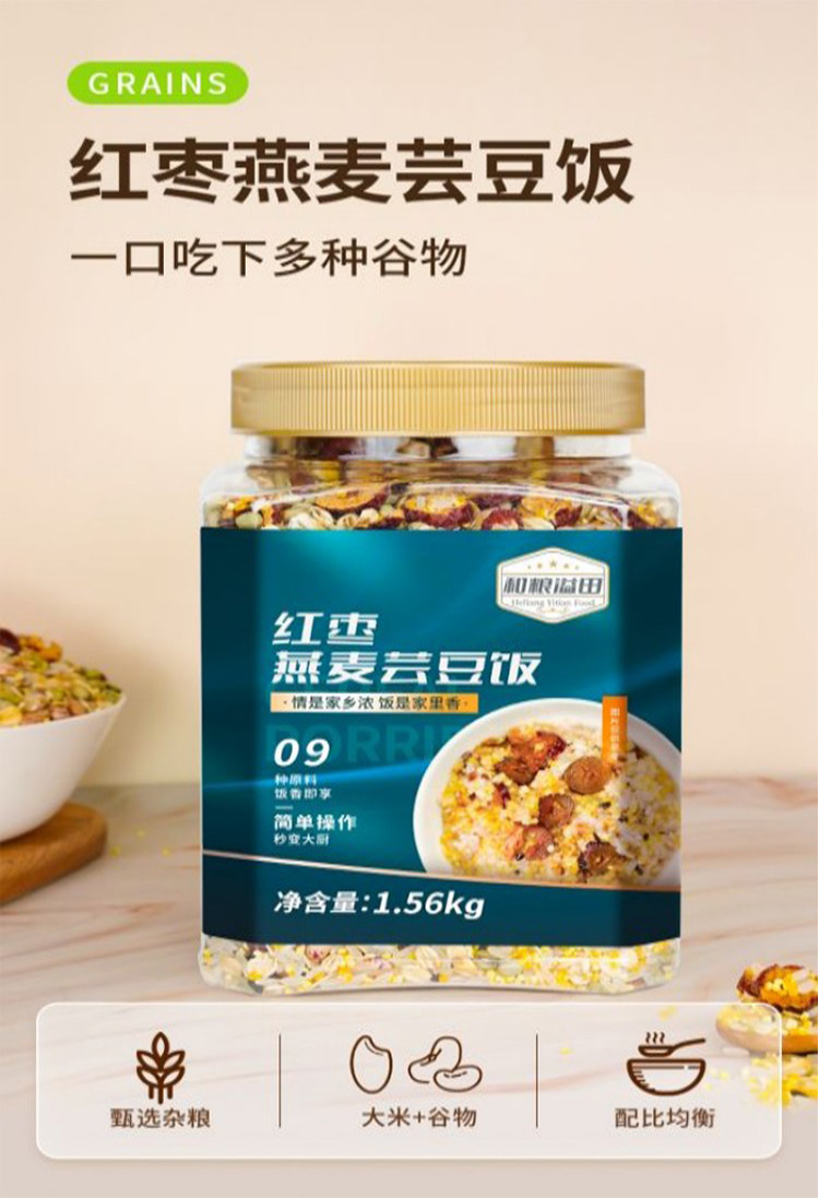 商品名称:(巨邦佑)BJ+溢田红枣燕麦荟豆饭1.56kg 东北杂粮粥米
