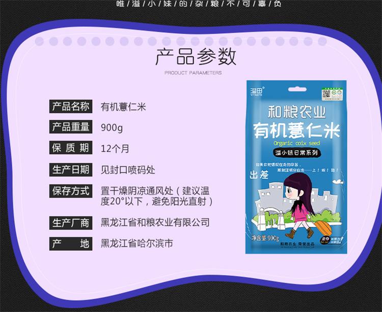 商品名称:(巨邦佑)BJ+溢田有机薏仁米900g 真空包装五谷杂粮新货