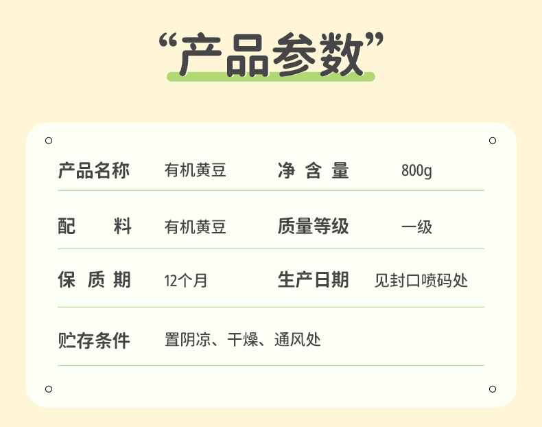 商品名称:(巨邦佑)BJ+溢田有机黄豆800g 有机杂粮豆香清新回味甘甜