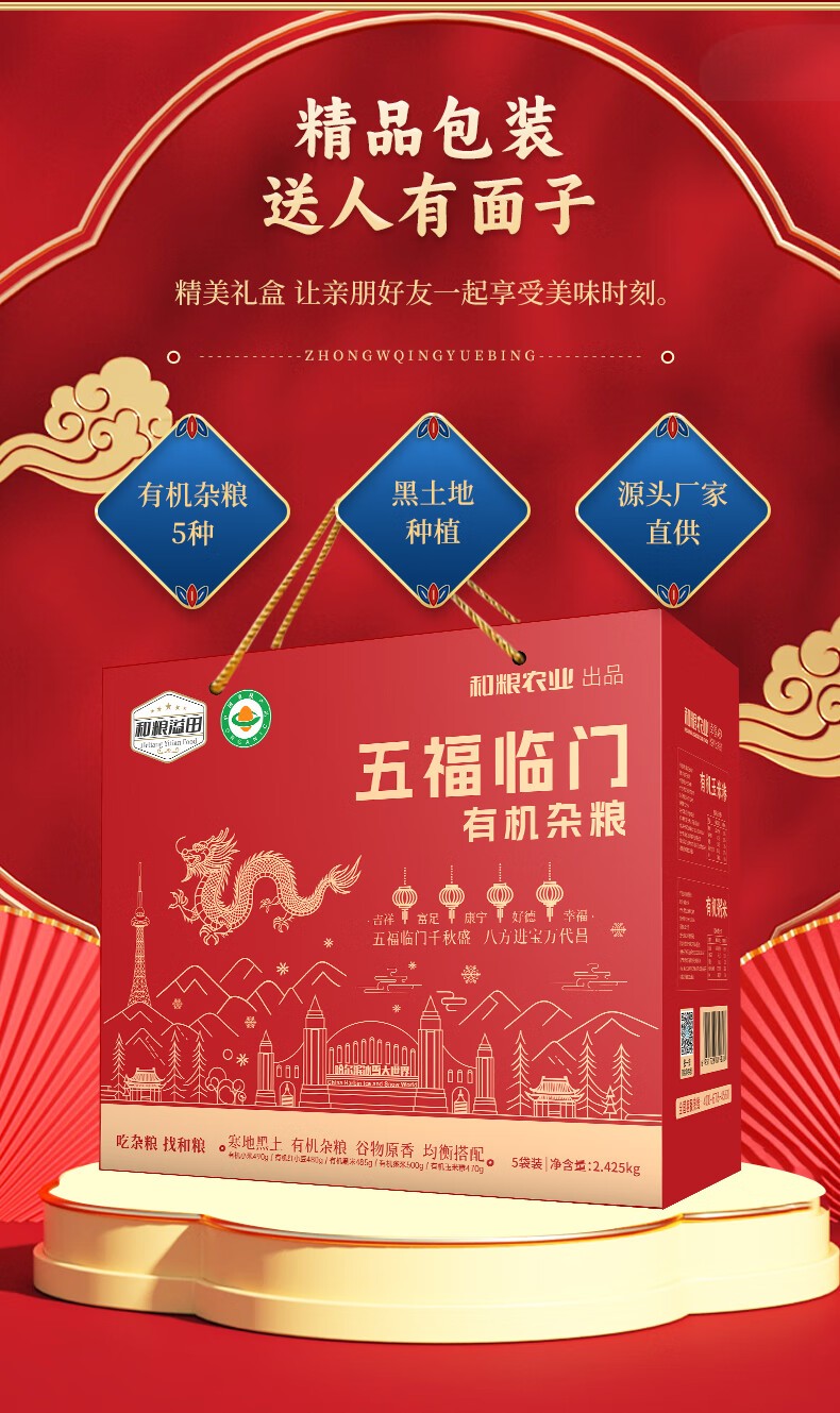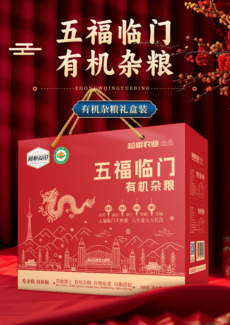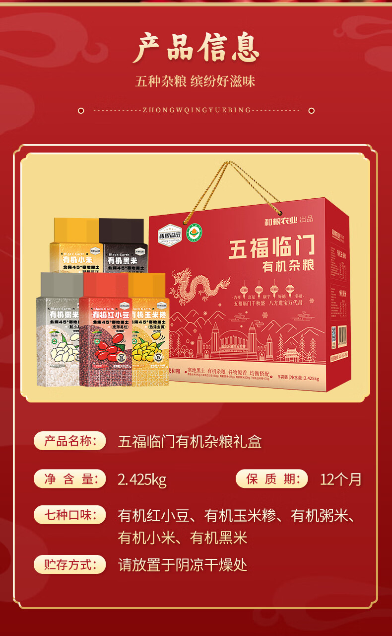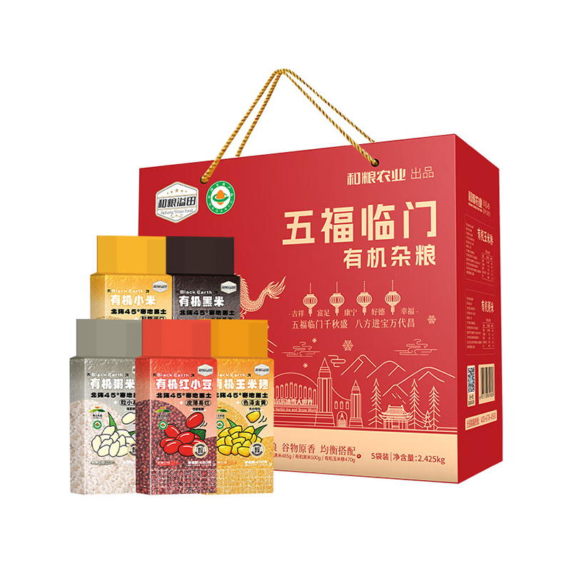 商品名称:(巨邦佑)BJ+溢田五福临门有机杂粮礼盒2.425kg 有机杂粮