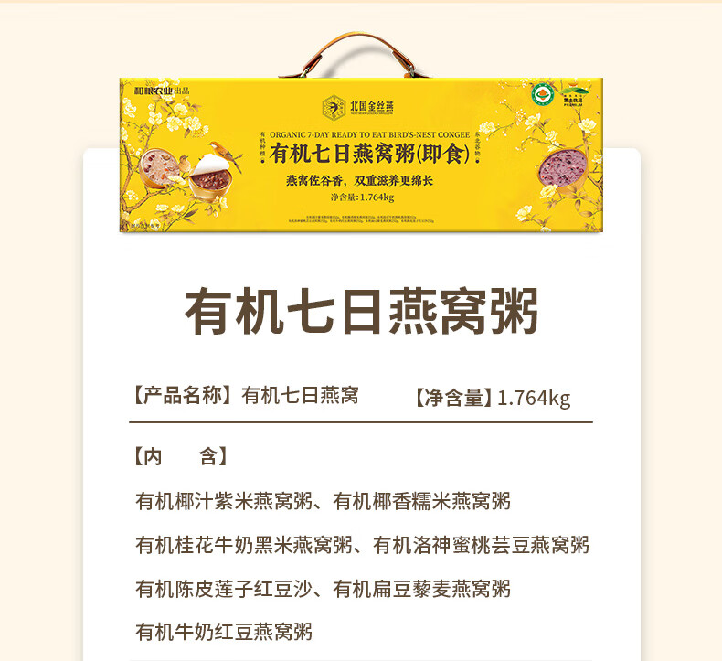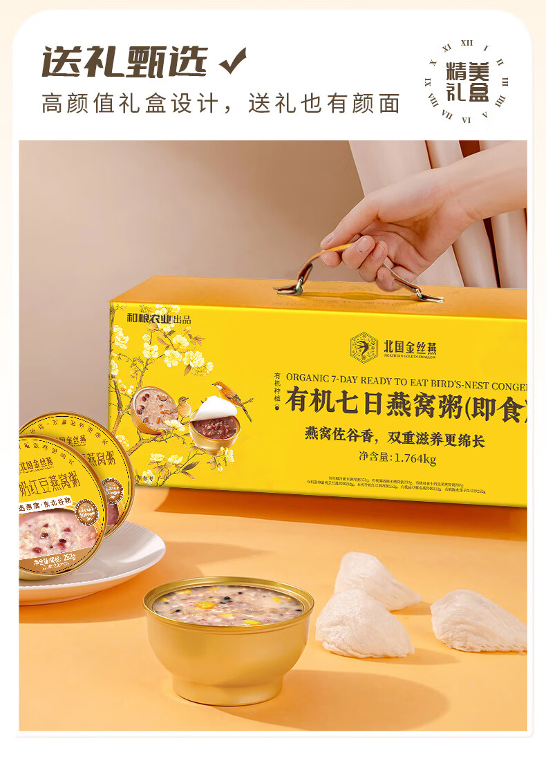 商品名称:(巨邦佑)BJ+溢田有机七日燕窝粥1.764kg 年货礼盒即食早餐粥