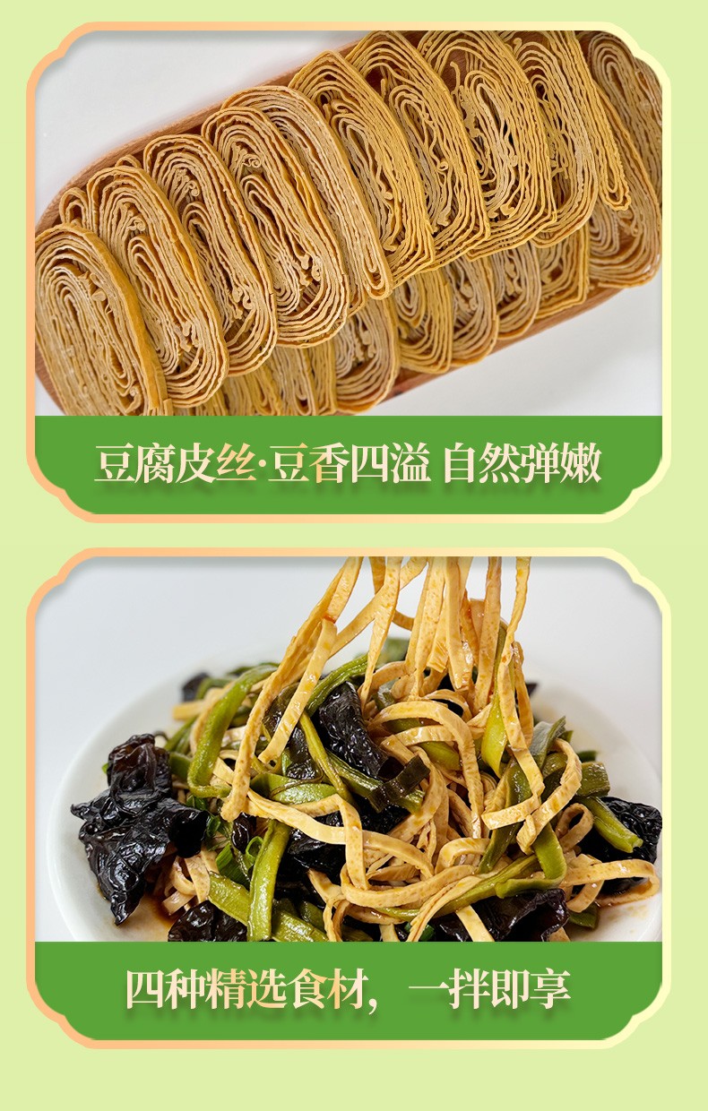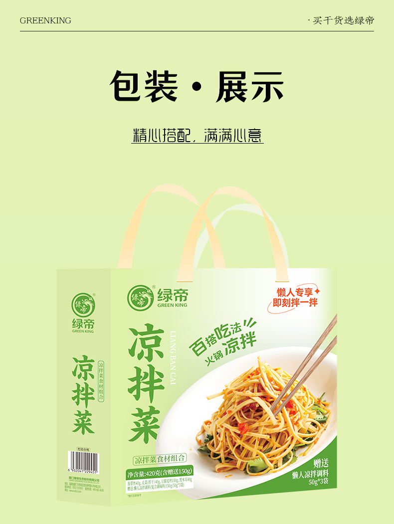 商品名称:(巨邦佑)T+绿帝凉拌菜(海带丝黑木耳豆腐皮贡菜)礼盒420g(礼盒420g海带丝40g、黑木耳40g、豆腐皮丝150g、贡菜干40g、鱼羊说懒人凉拌调料50g*3)