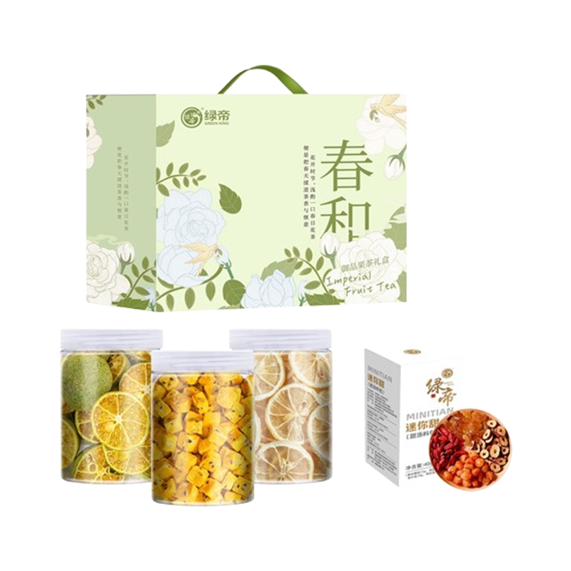 (巨邦佑)T+绿帝御品果茶礼盒150g(冻干柠檬片20g、冻干青桔30g、冻干百香果60g 、迷你甜40g)