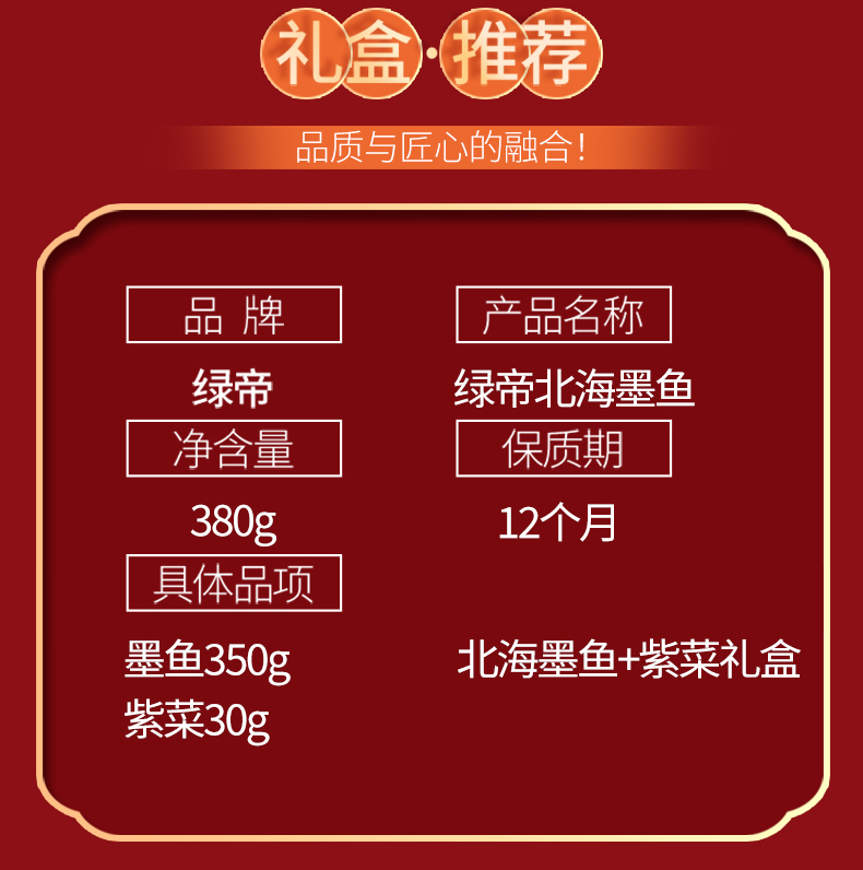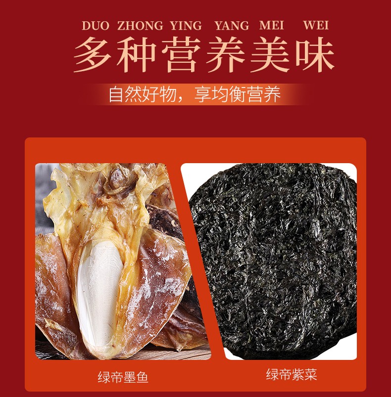 商品名称:(巨邦佑)T+绿帝北海墨鱼紫菜礼盒380g
