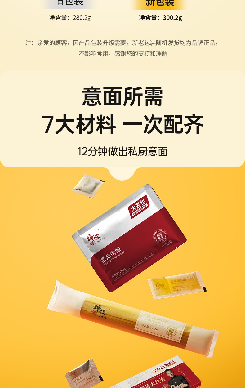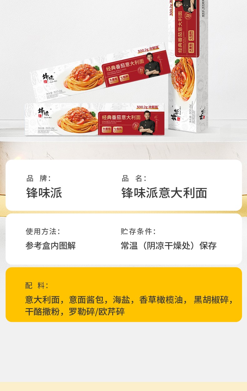 商品名称:(世星阳光)锋味派经典番茄意大利面300.2g*3 家用早餐速食拌面意粉方便面条