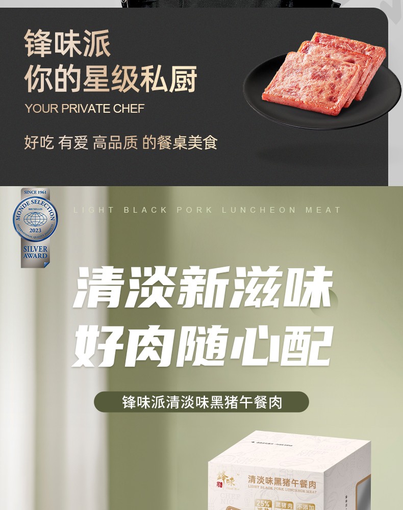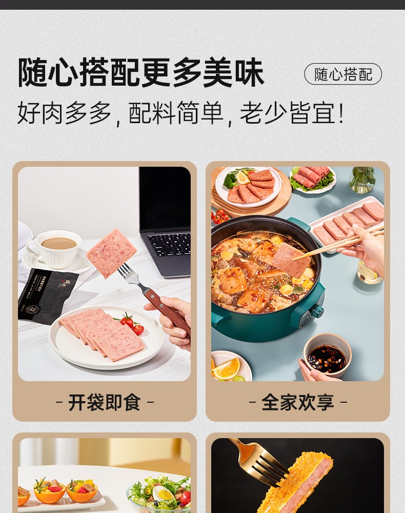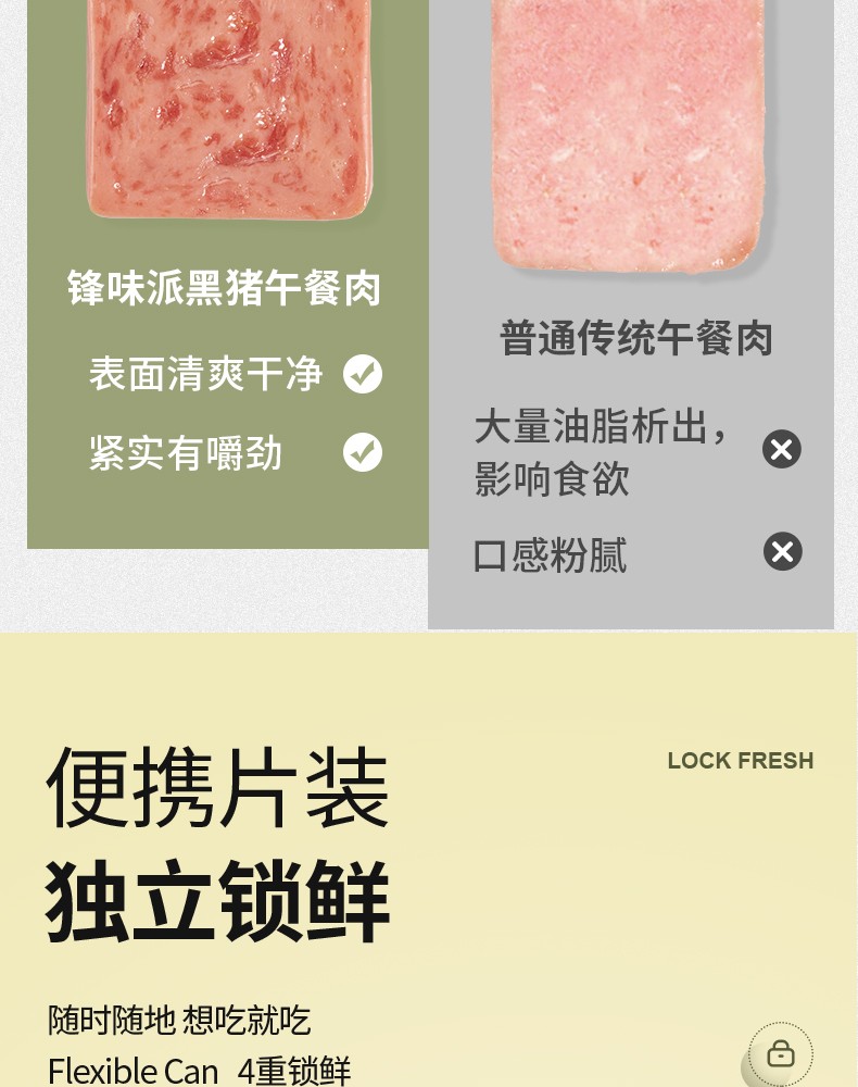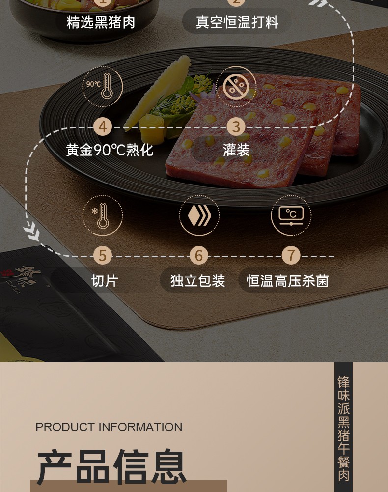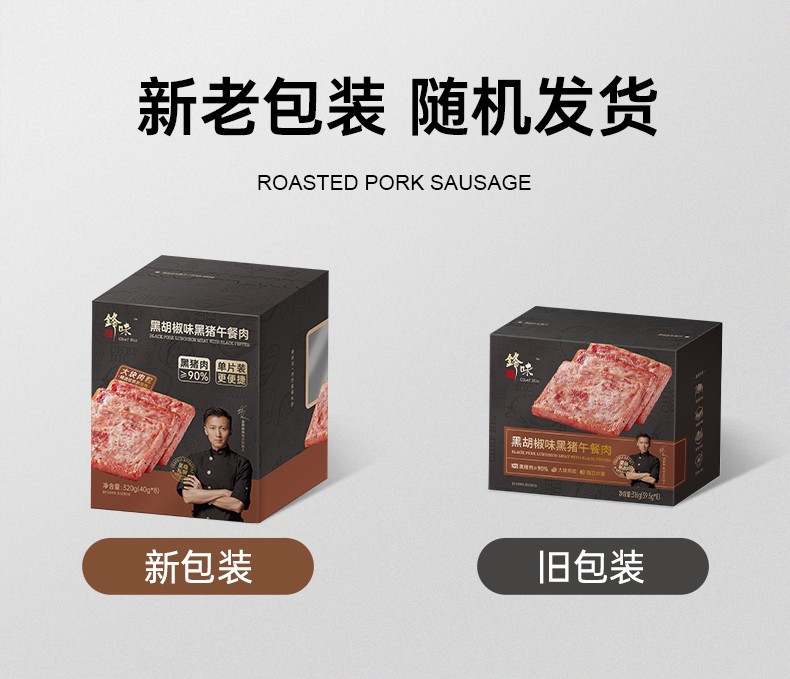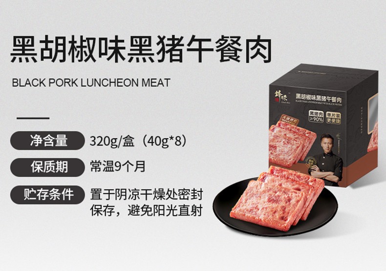 商品名称:(世星阳光)锋味派黑猪肉午餐肉320g*4独立包装开袋速食早餐火腿片肠香肠火锅食材