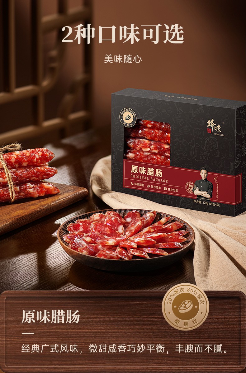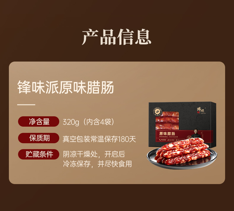 商品名称:(世星阳光)锋味派腊肠320g*6纯肉二八腊肉特级腊肠广东特产熟食腊味